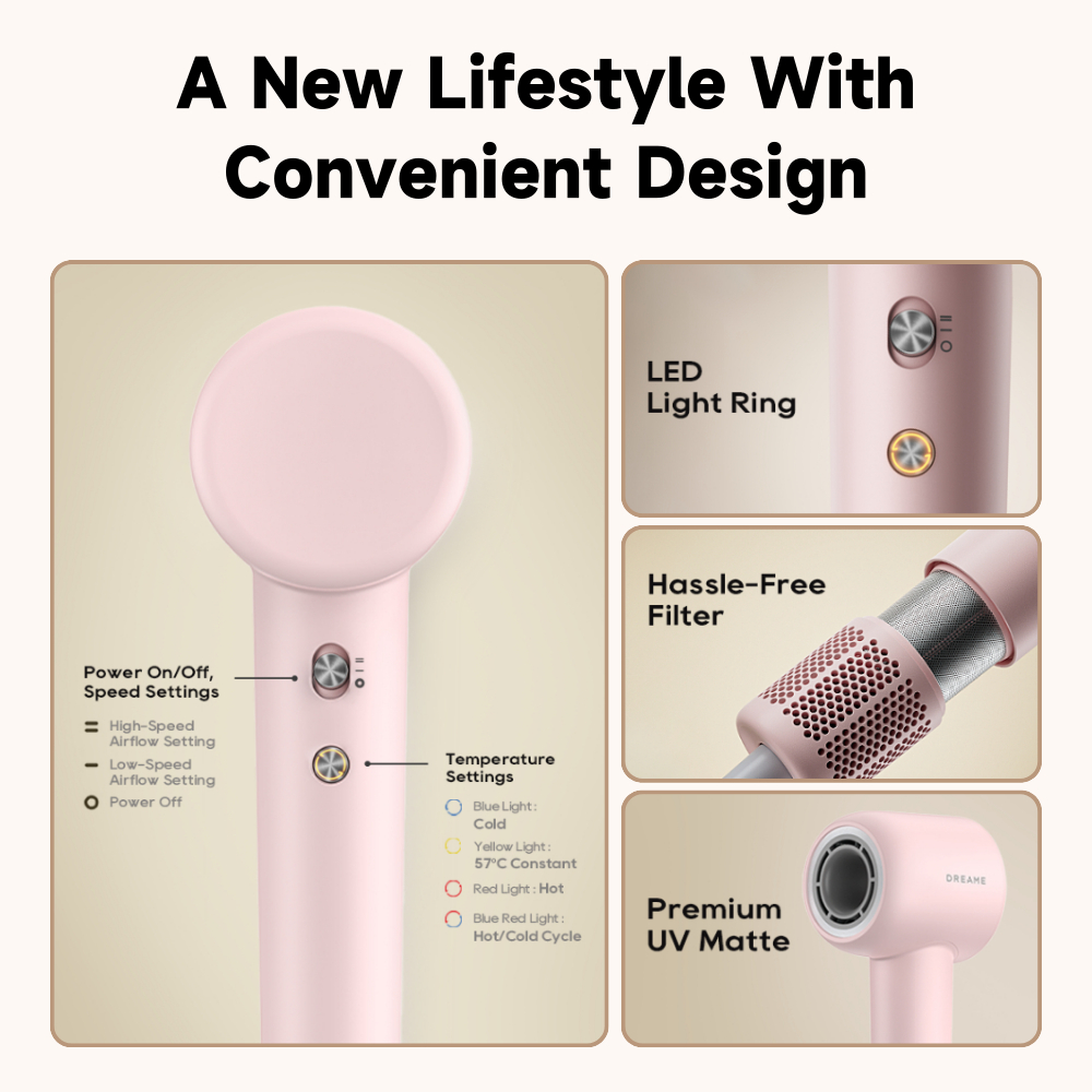 Dreame Hair Gleam Hair Dryer | High Speed 2 Mins Fast Drying | 330G Lightweight | 2 Years Warranty