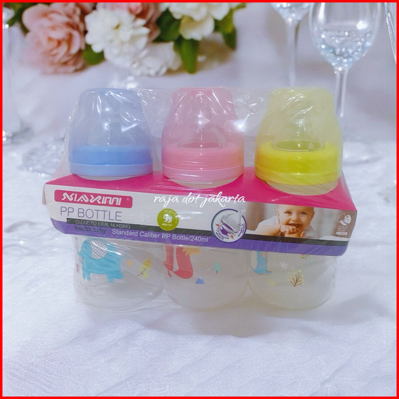 Paket 3 Botol Susu Wideneck Jumbo 240ml Dengan Dot 5cm Peristaltic Dot Ulir Anti Kolik