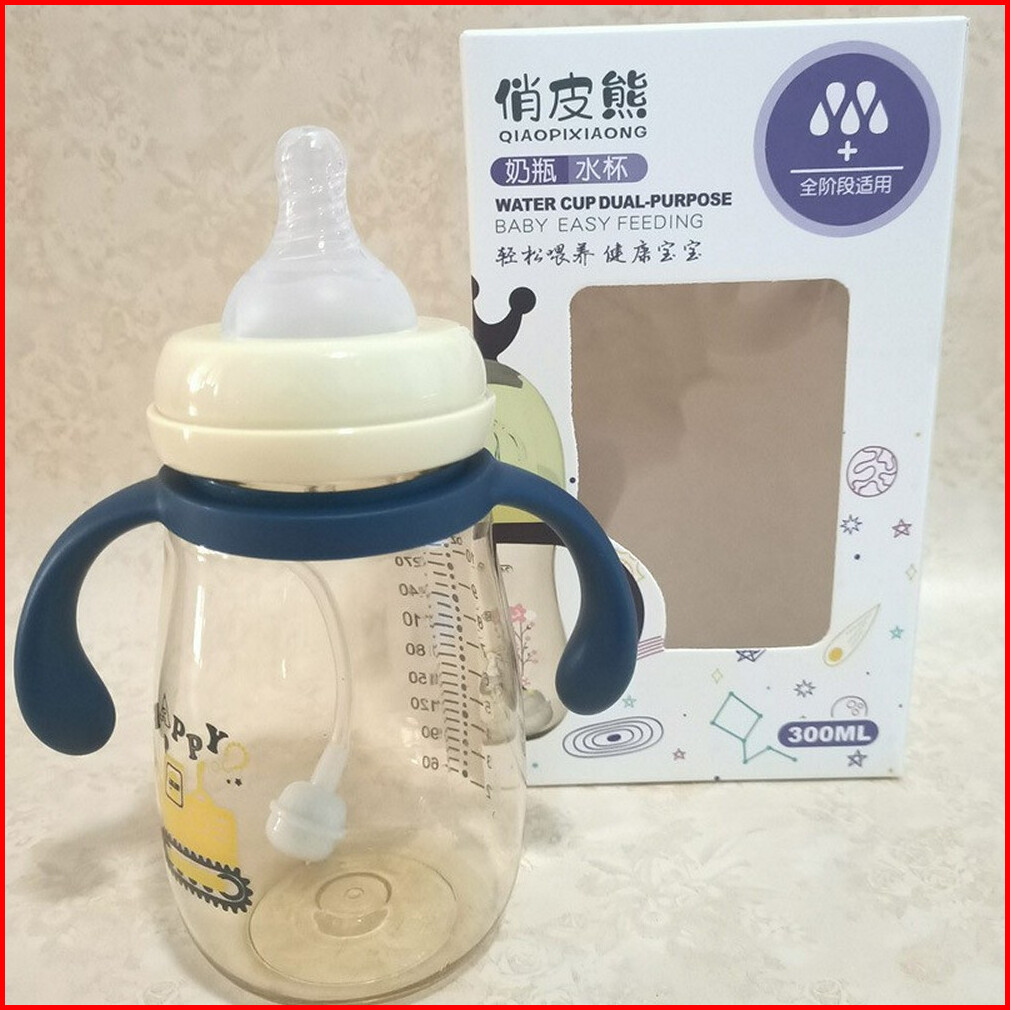 Botol Minum Training Cup 2in1 Anak 300ml Bpa Free Gelas Botol Air Minum Bayi Dengan Dot Dan Sedotan Lucu Anti Tumpah Bay