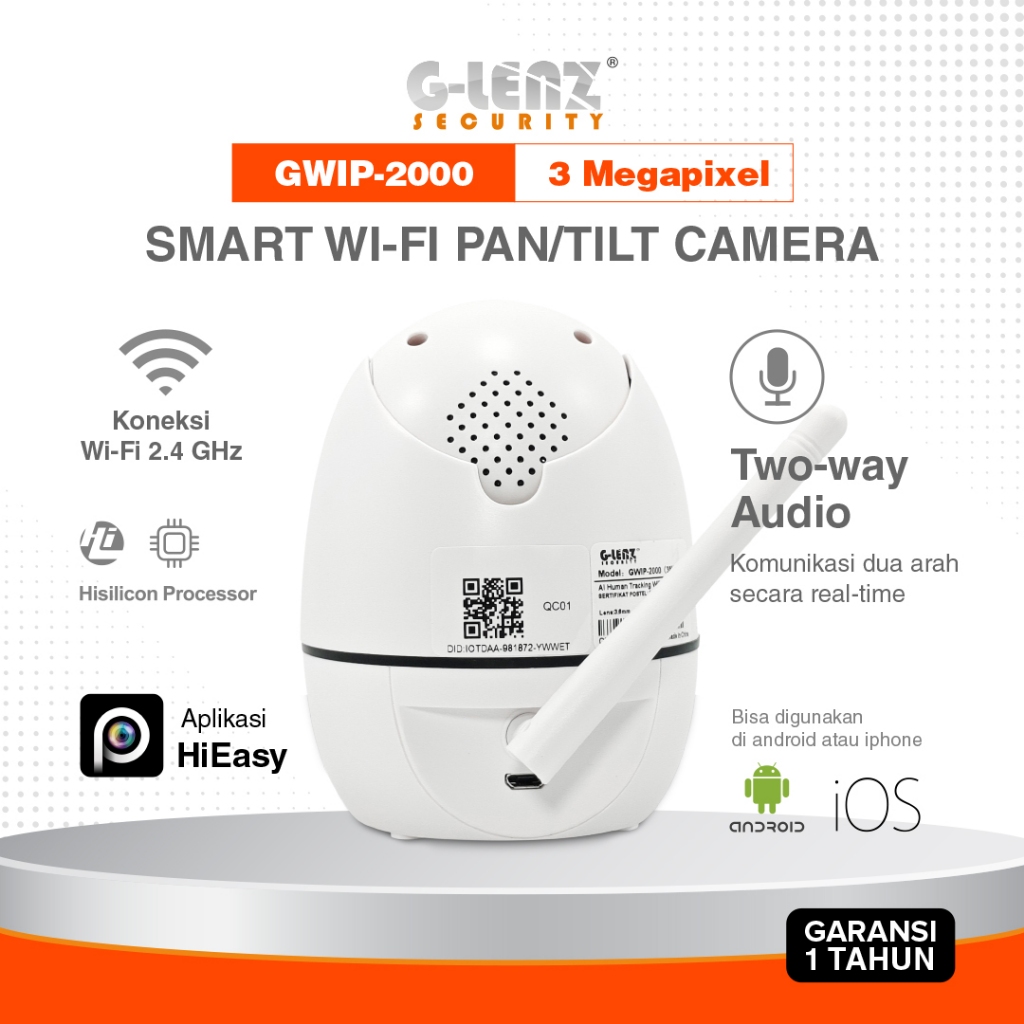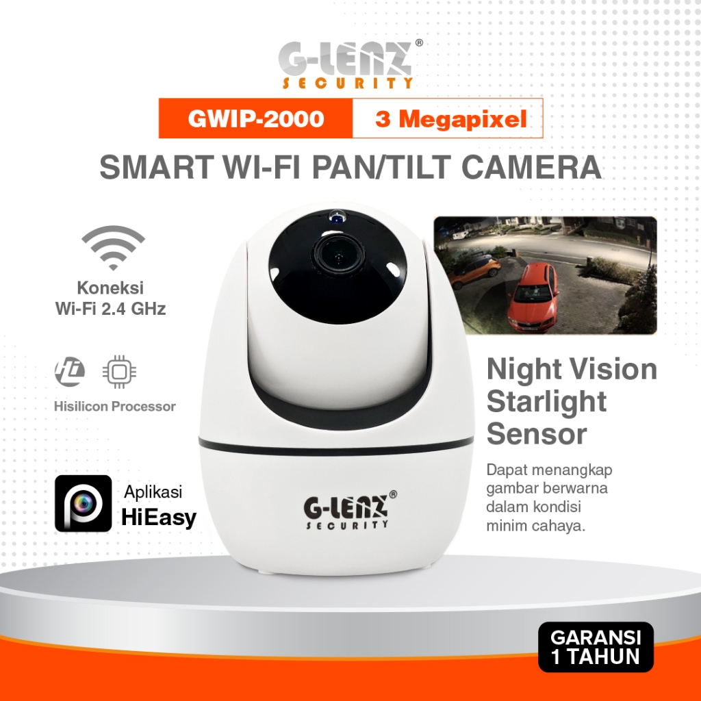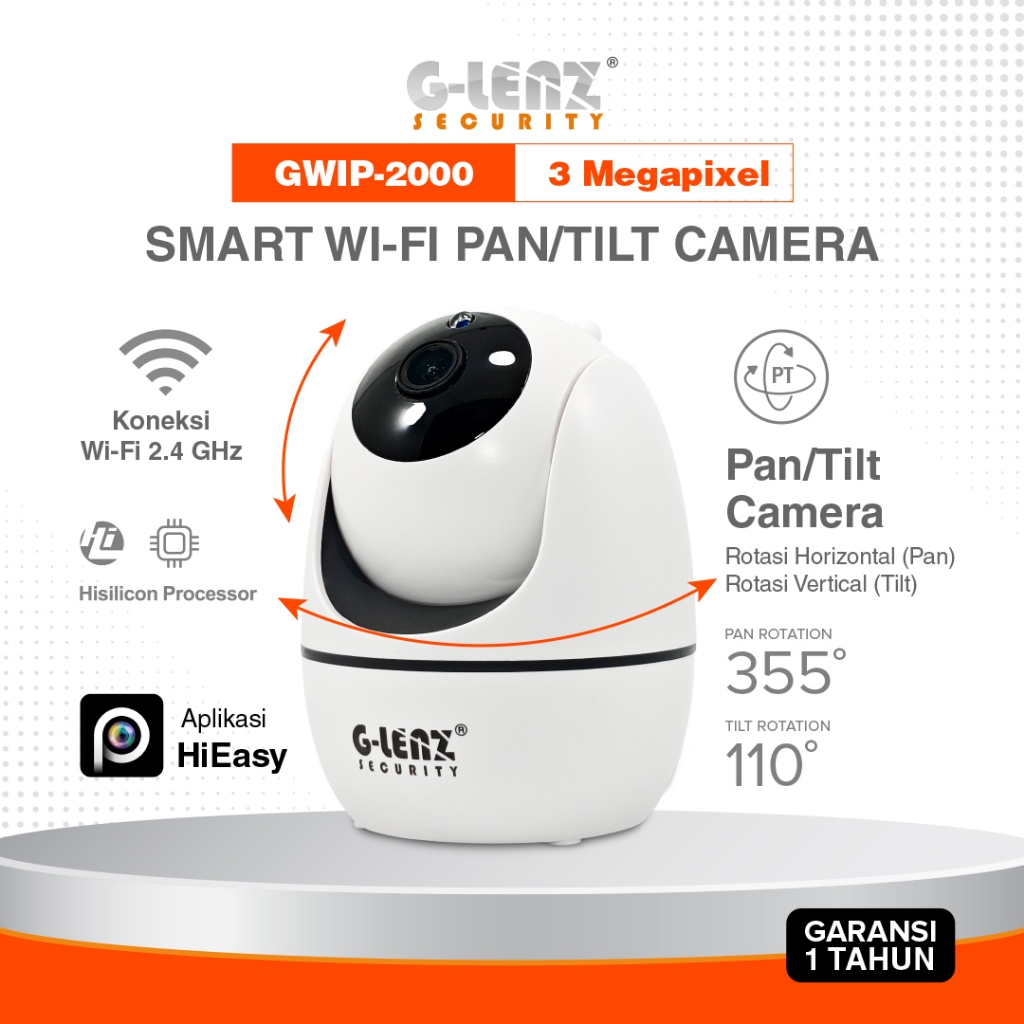 GLENZ SMART IP CAMERA WIFI INDOOR CCTV PTZ GWIP 2000 Full HD 3MP