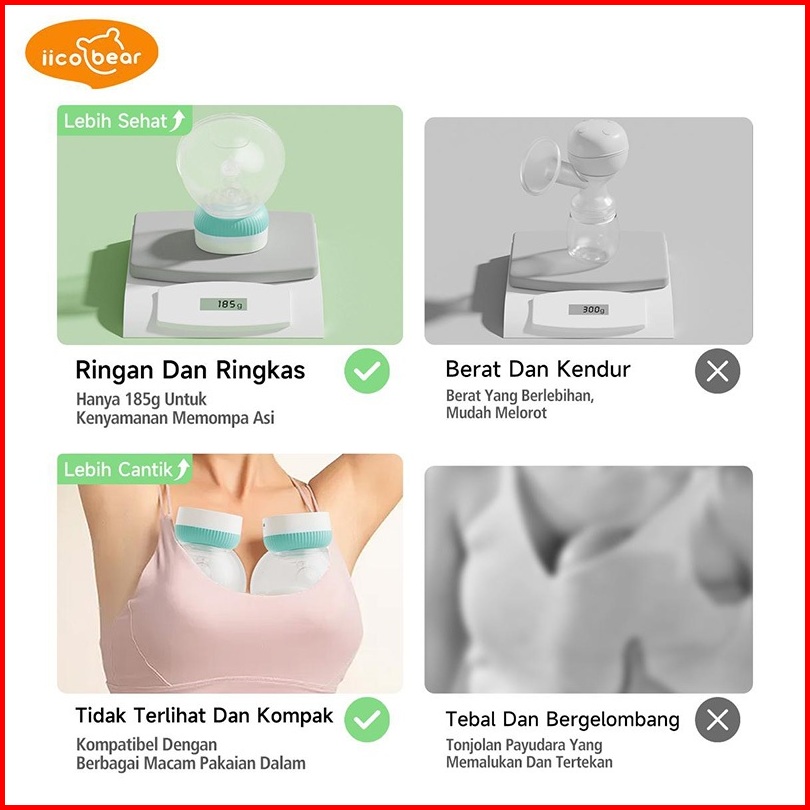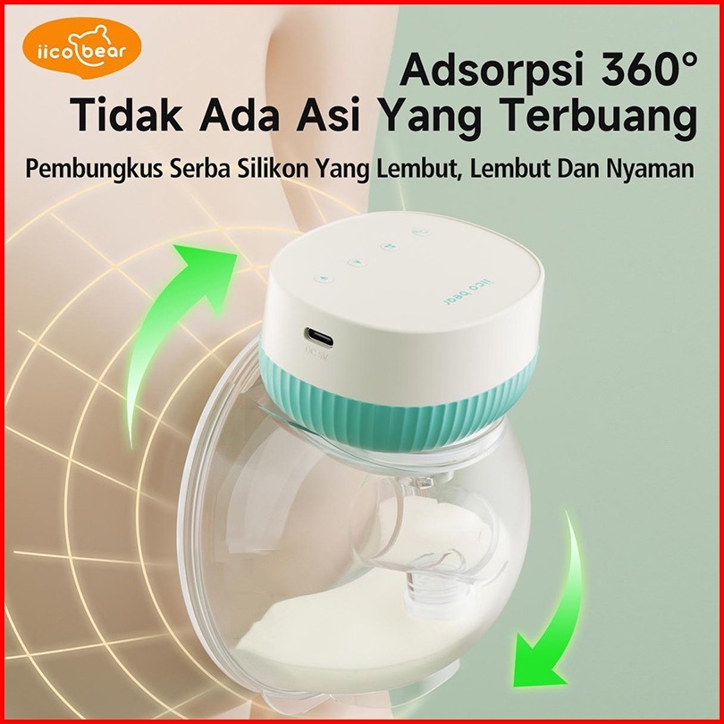 Iico Bear Pompa Asi Elektrik Handsfree Wearable Breastpump Portable Wireless Ibu Pumping Bpa Free