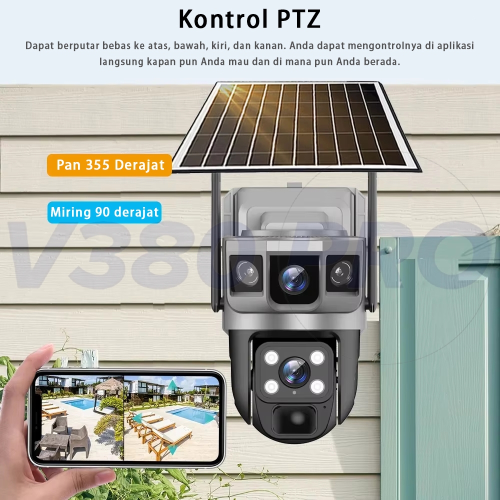 V380 Pro Kamera CCTV Tenaga Surya 4G SIM WIFI Daya Tahan Baterai Hingga 14 Hari Dalam Cuaca Berawan