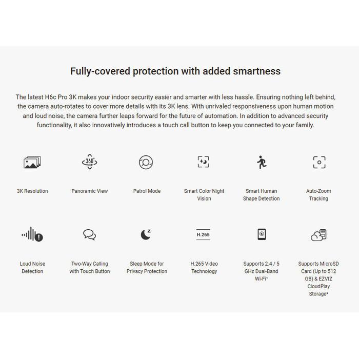 EZVIZ H6C PRO 3MP 2MP Smart Home Pan Tilt IP Camera CCTV Wifi Jarak Jauh Lewat Hp Pengganti C6N