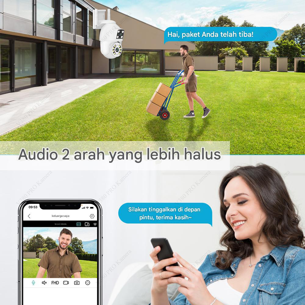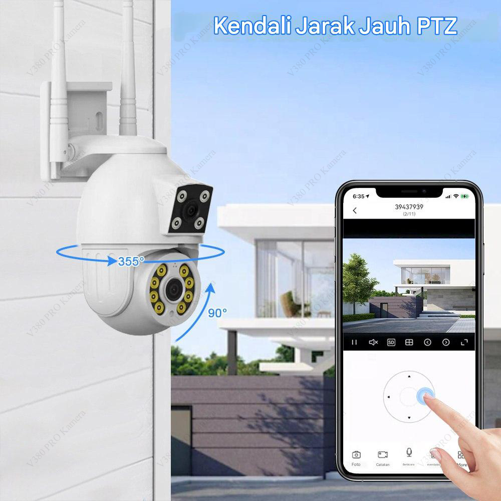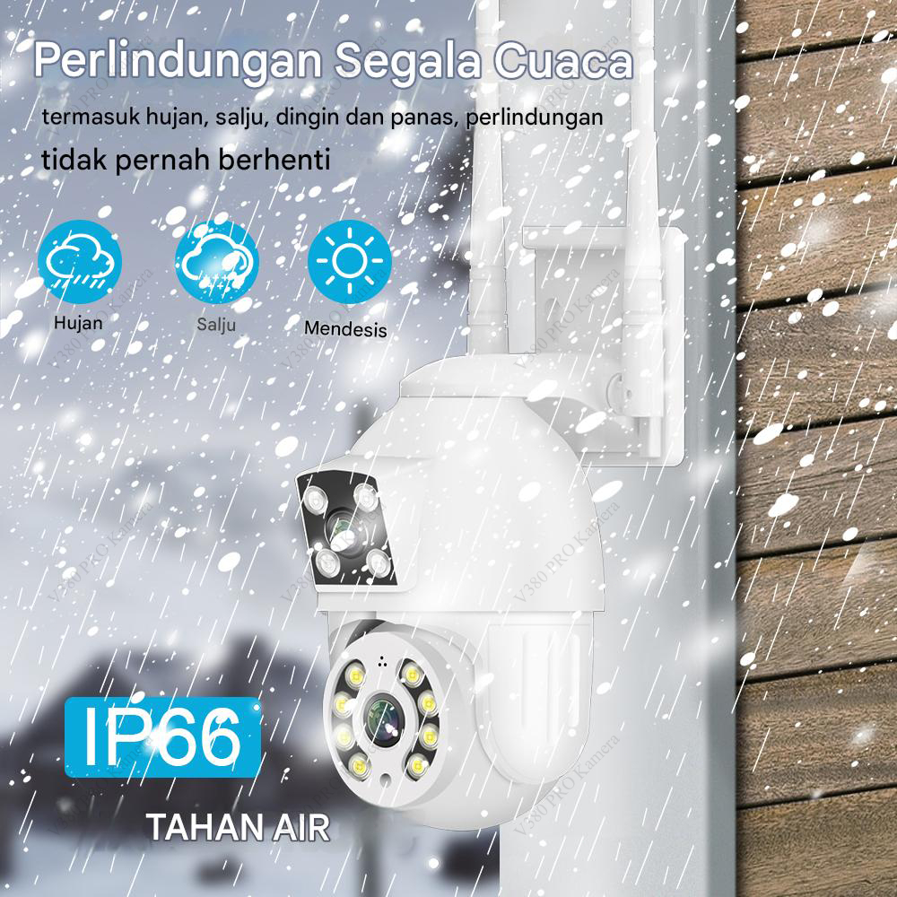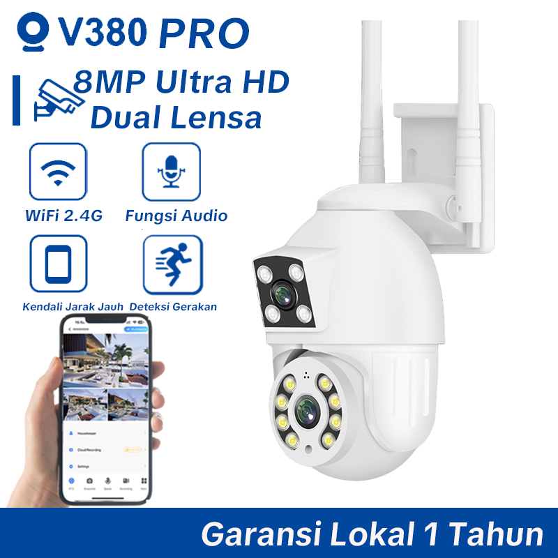 V380 PRO Kamera CCTV 8MP Outdoor IP Camera Lensa Ganda Layar Ganda Pembicaraan Dua Arah Penuh Warna