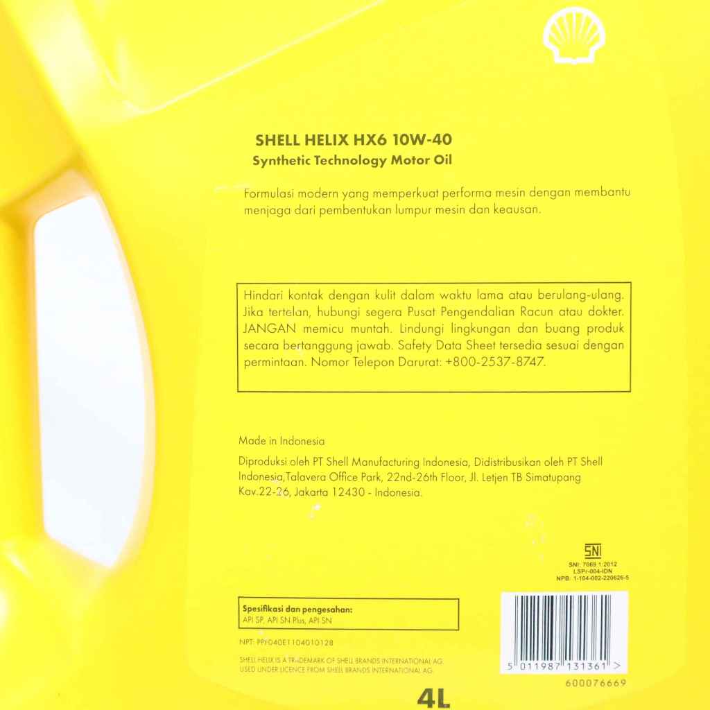 Shell Helix HX6 SAE 10W-40 4 Liter Api SP Oli Mobil Mesin Bensin Pelumas Synthetic Active Cleansing Technology Original