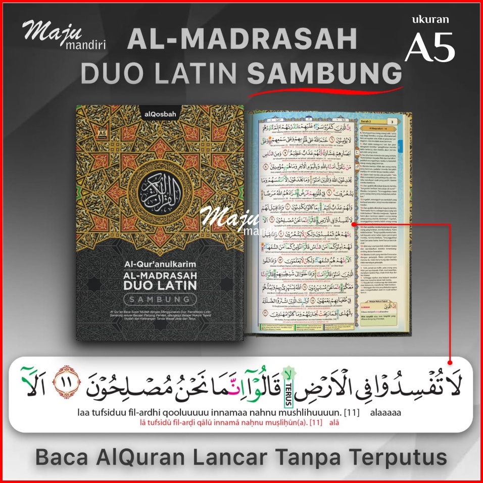 Mushaf Alquran Almadrasah Duo Latin Sambung Ukuran Sedang A5 Terjemahan Tajwid Warna Wakaf Ibtida
