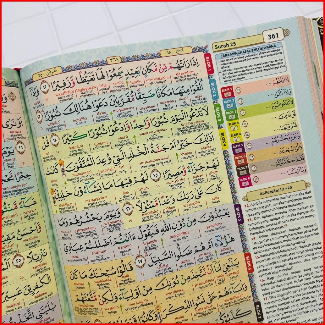 Al Quran Hafazan Perkata Latin A5 Hc Qpp Al Quran Hafalan 8 Blok Terjemah Tajwid Warna Alqosbah