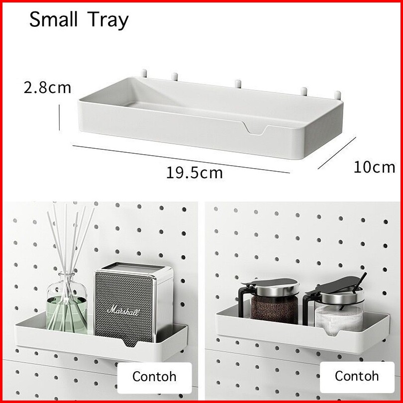 Board 21*21cm, Board 21*42cm, Board 27*30cm, Board 33*51cm, Cup, Small Tray, Large Tray, L Hook, J Hook, U Holder, Hanger, Handphone Holder, Tissue Holder, Partition Holder, Transparent Tray, Bowl Holder, Strainer Holder, Plate Holder