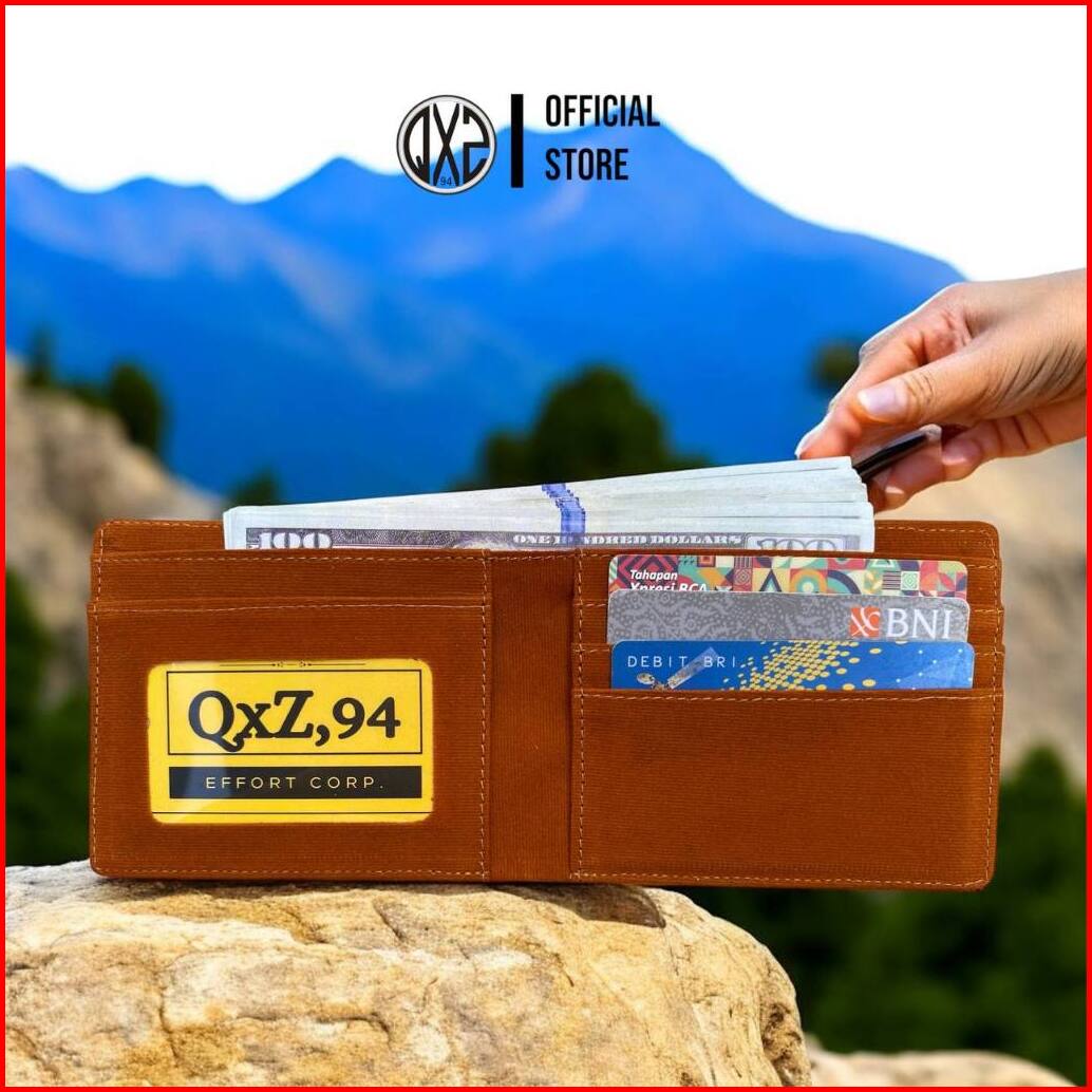 Qxz94 Dompet Pria Bahan Corduroy Suede Beludru Kanvas Pendek Lipat Kartu Uang Tipis Polos Tan Bc05