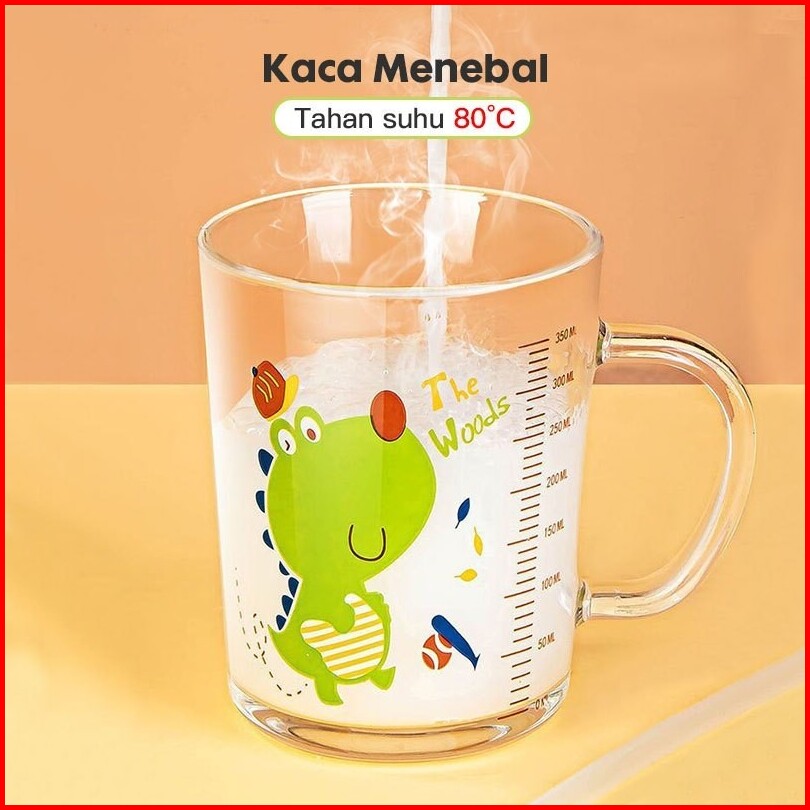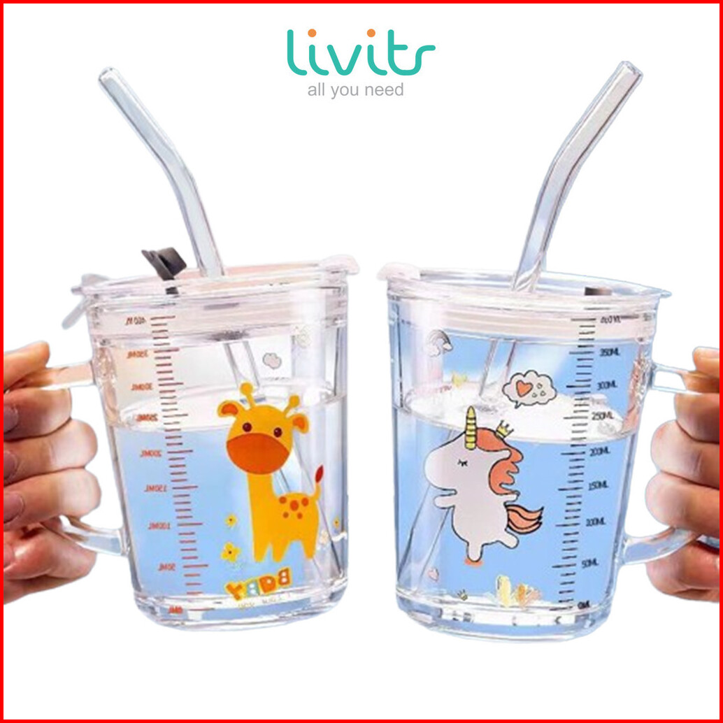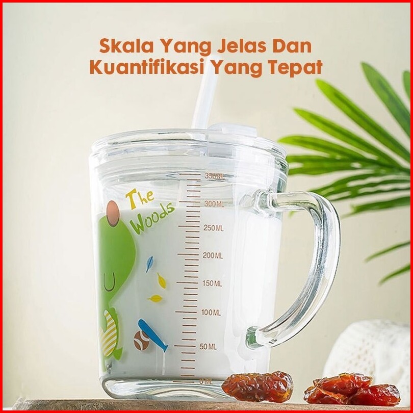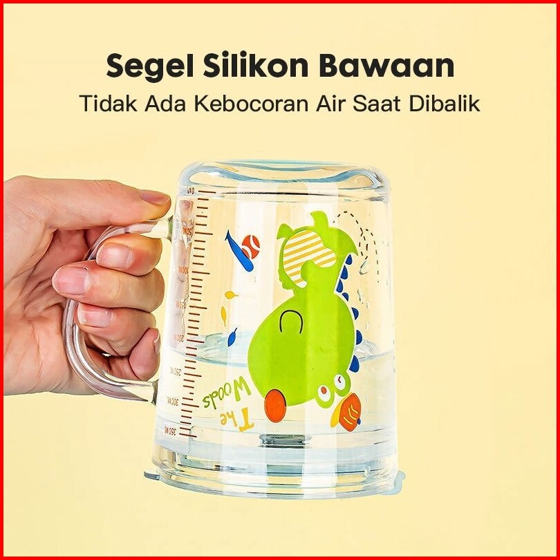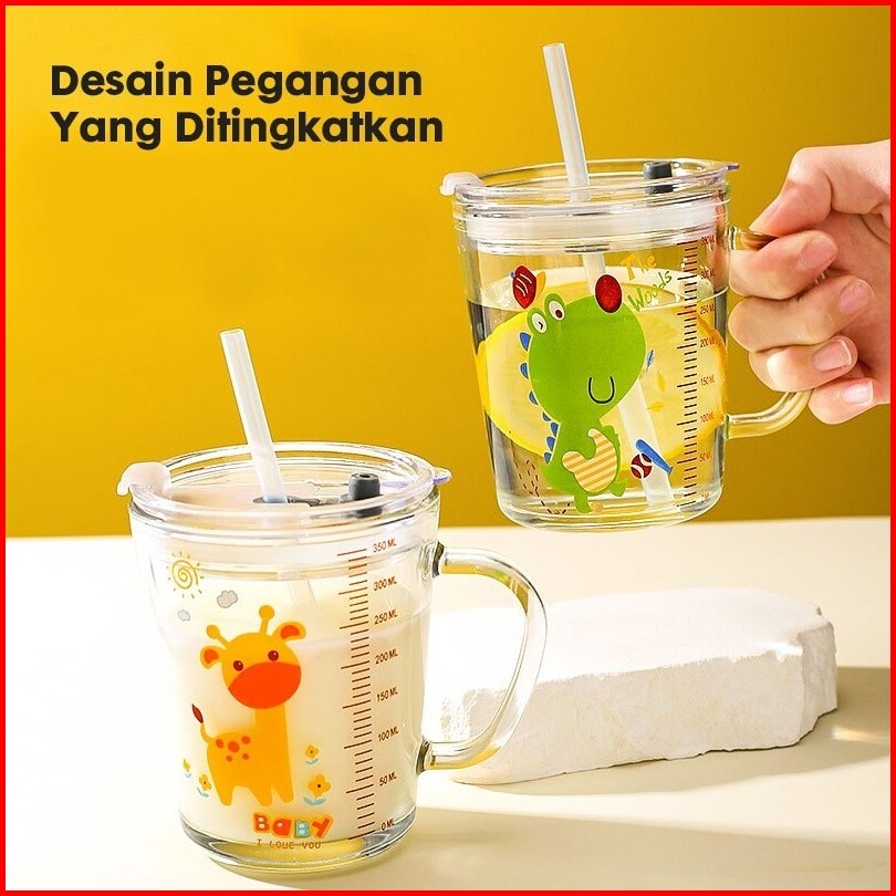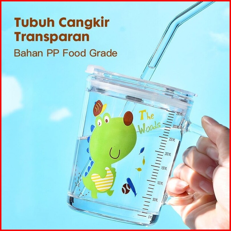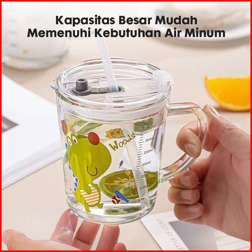Gelas Minum Anak Mug Susu Anti Tumpah 400ml Dengan Gagang Gratis Sedotan Motif Karakter Hewan