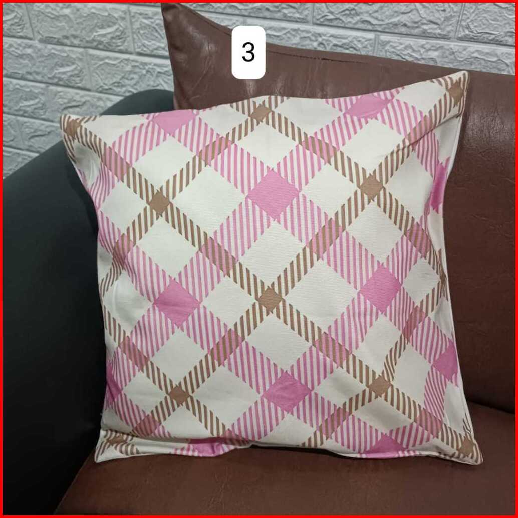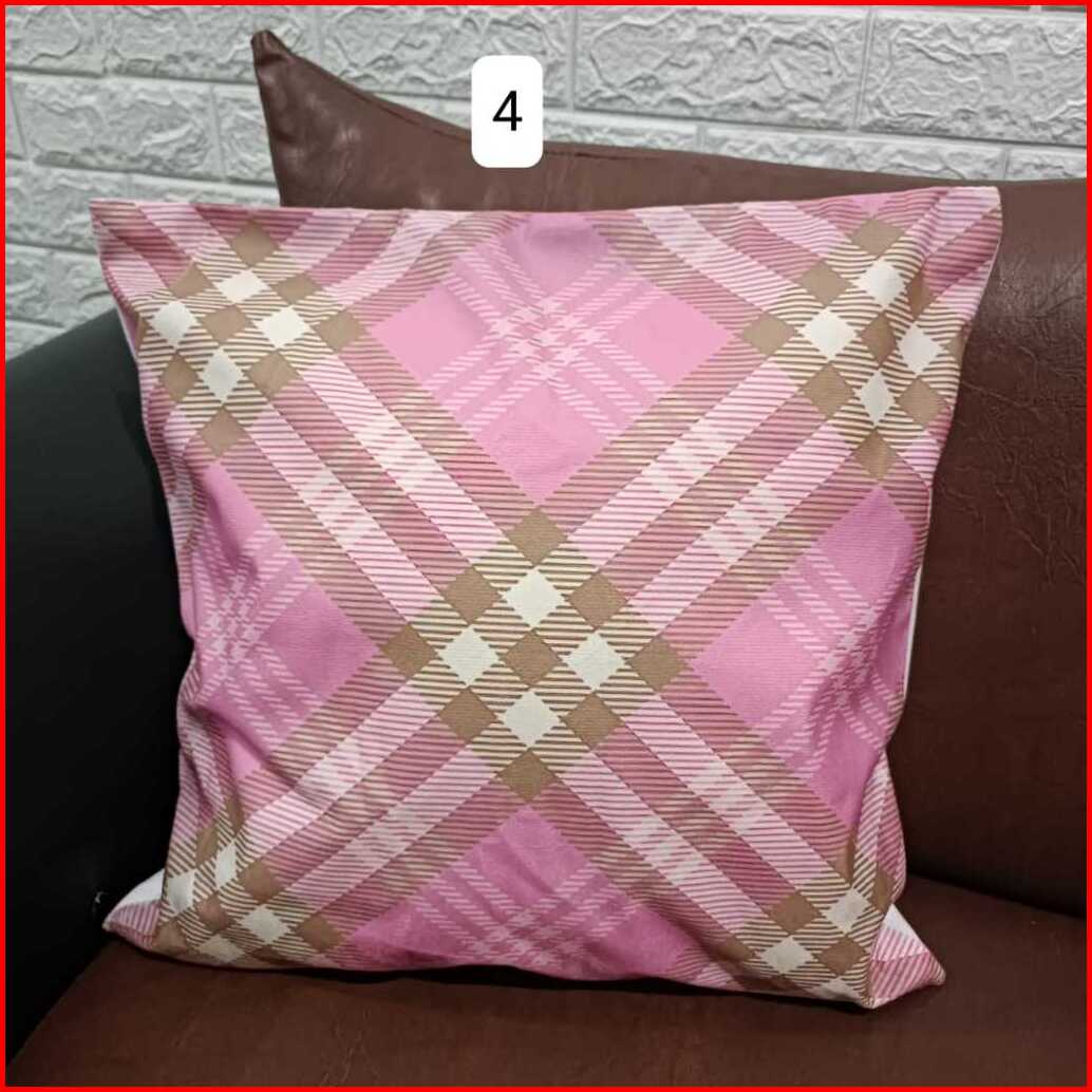 Sarung Bantal Import Motif Kotak Garis Warna Pink Size 45x45cm