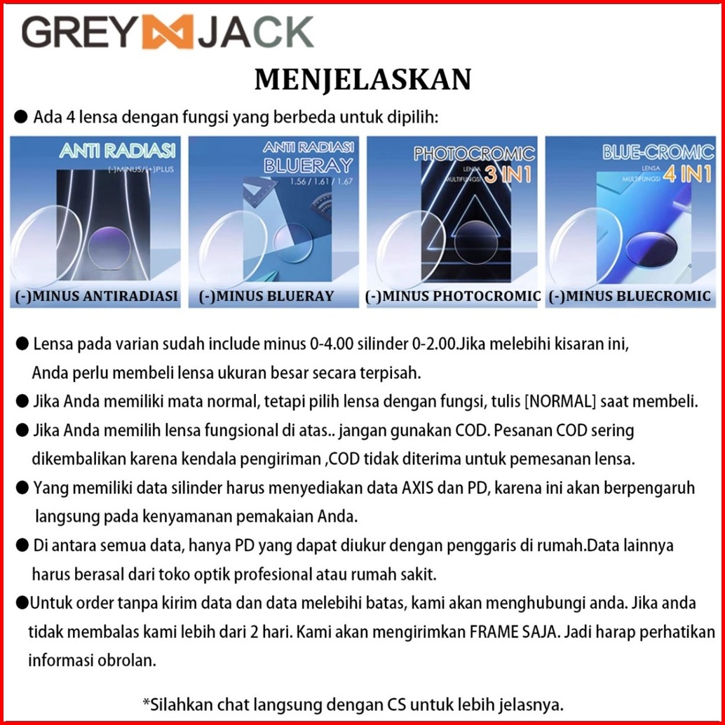 Grey Jack Frame Kacamata Bulat Bahan Titanium Ringan Kokoh Fashion Pria Wanita Bisaa Minus Antiradiasi Blueray Bluecromi