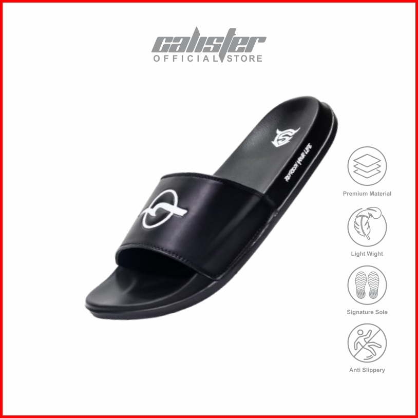 Calister - Sendal Selop Distro Pria Wanita X Freak Logo Hitam Putih Slop Pria Slip On Pria
