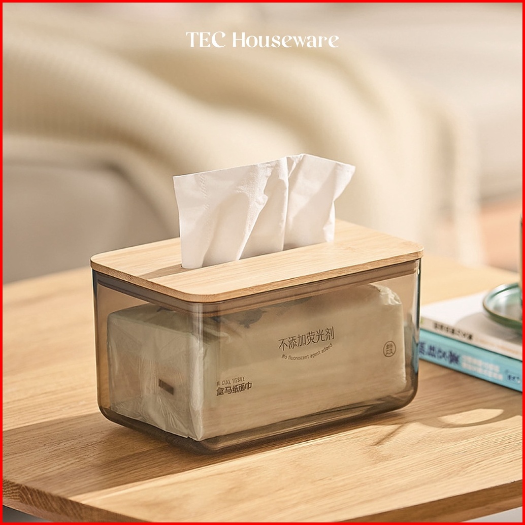 Kotak Tissue Tec Moku Kotak Tissue Kayu Transparan Modern Kotak Penyimpanan Transparan Tissue Box Kotak Tisu Organiser B
