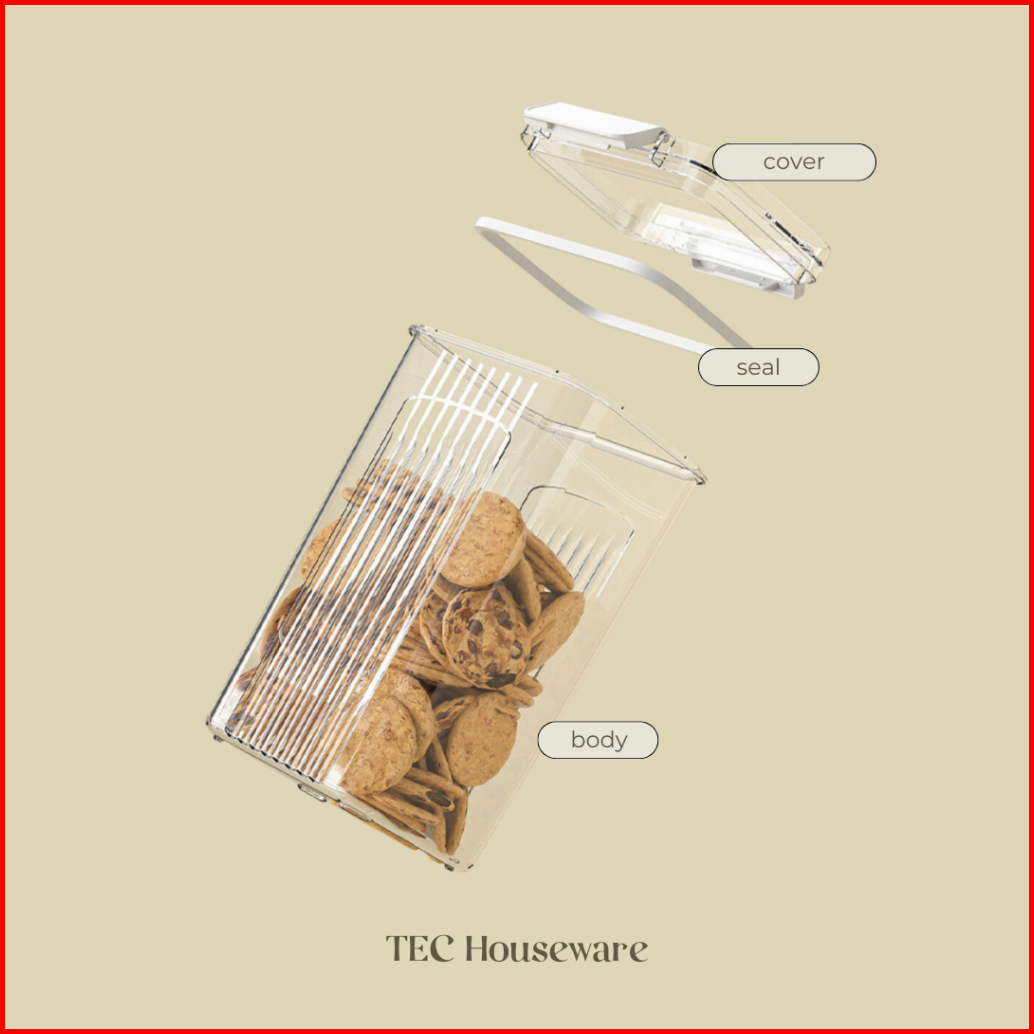 Toples Tempat Penyimpanan Tec Mosi Kotak Toples Penyimpanan Makanan Sebaguna Hitam Kedap Udara Tempat Penyimpanan Cereal