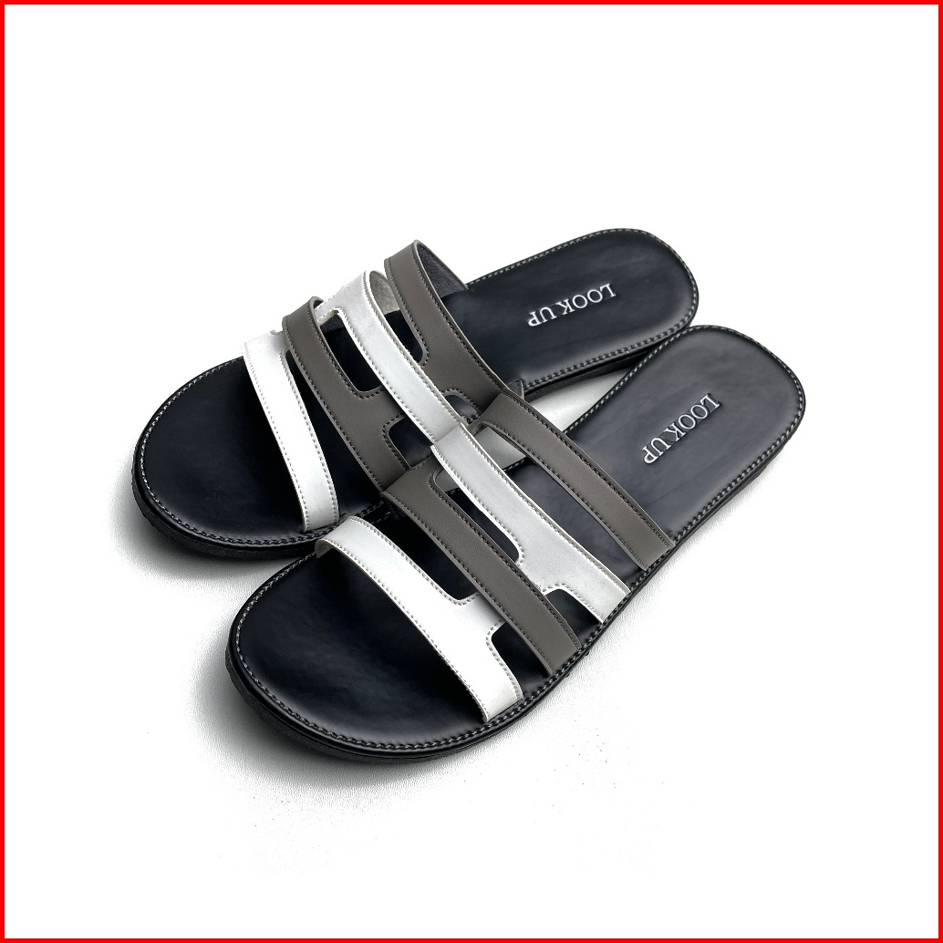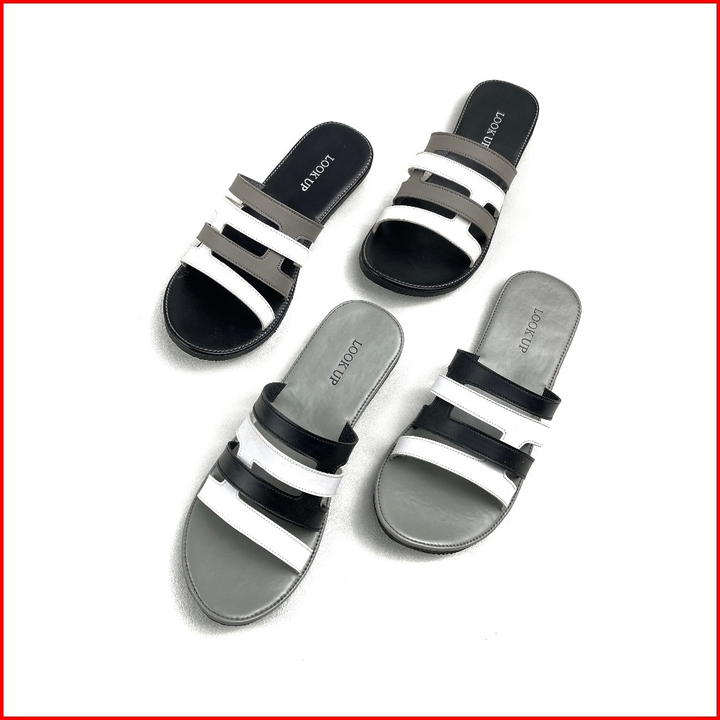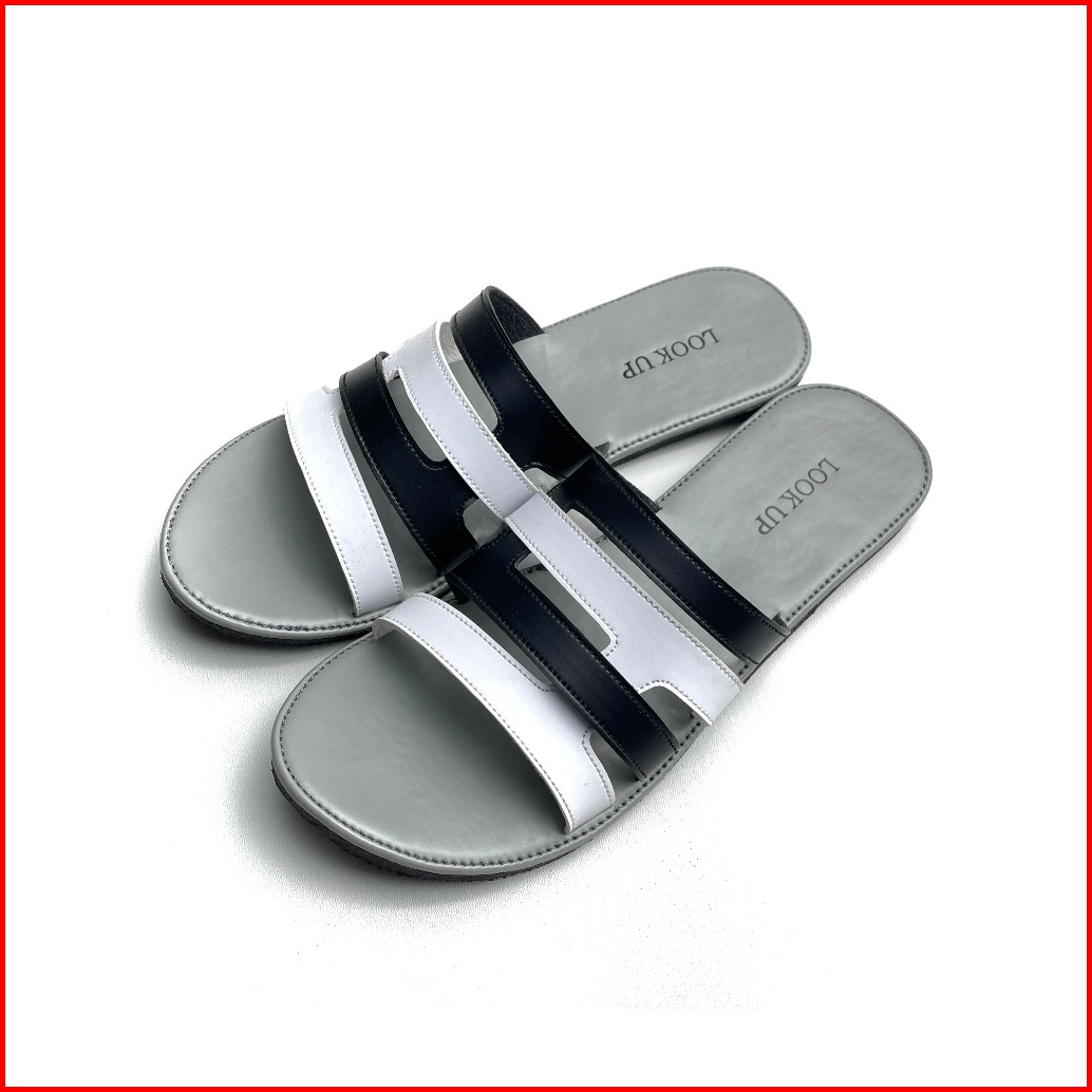 Yuniar Monochrome Lookupshoes Sandal Wanita Slop Kokop Slide Slip On Anti Licin Sol Karet Teplek Motif Hitam Abu Kombina