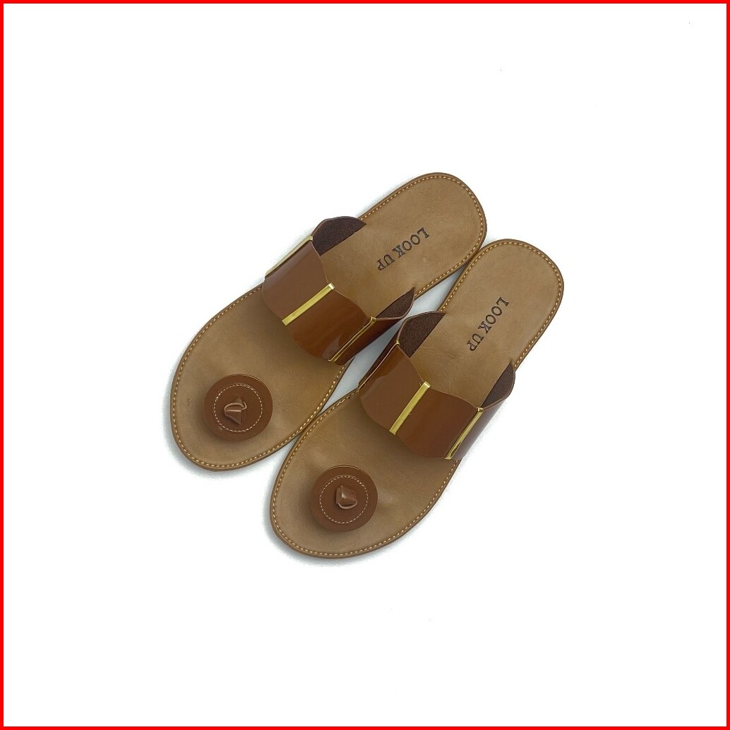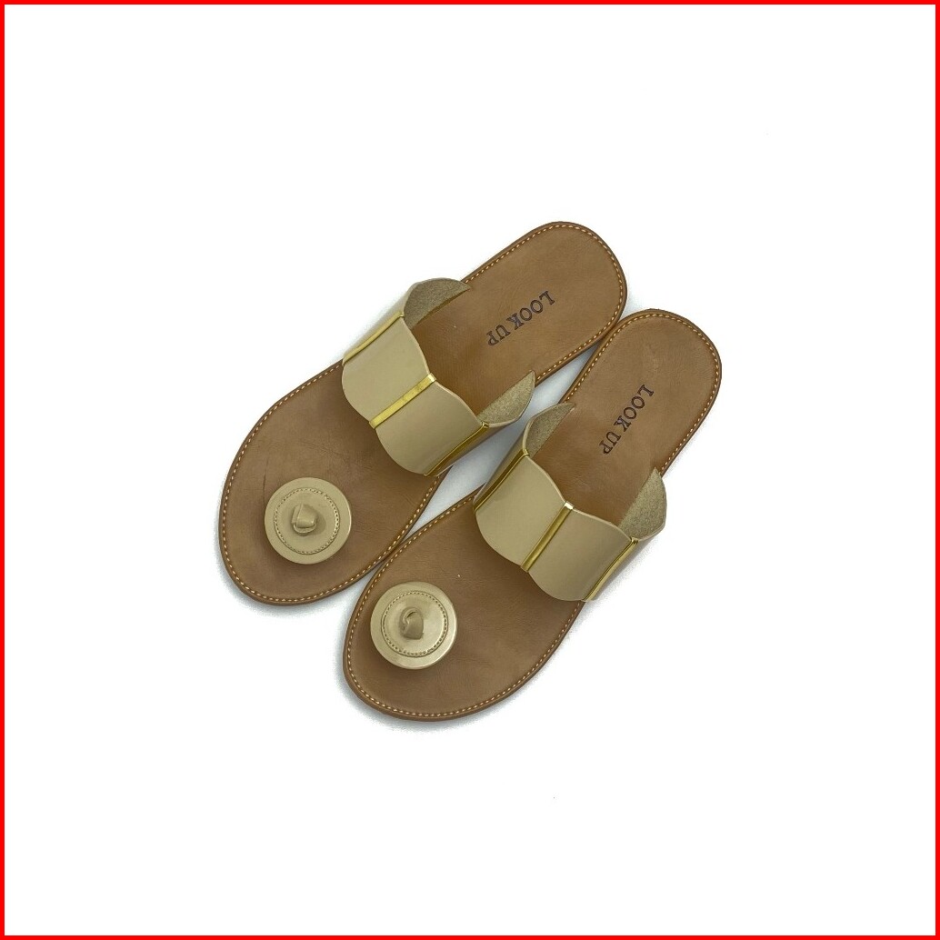 Kalla Lookupshoes Sandal Jepit Glossy Wanita Model Kancing Jamur Korean Style Empuk Kulit Sintetis Sol Karet Anti Licin