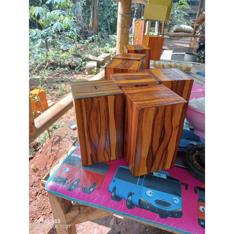 Lk- celengan kayu unik serat kayu asli chat kotak penyimpanan tabungan permanen tanpa kunci berkualitas