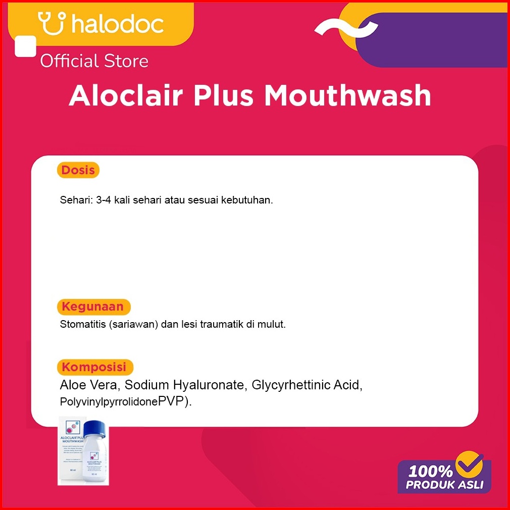Aloclair Plus Mouthwash 60 Ml Pereda Nyeri Dan Membantu Penyembuhan Pada Ulkus Rongga Mulut