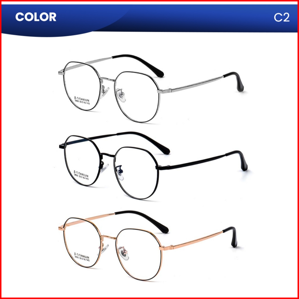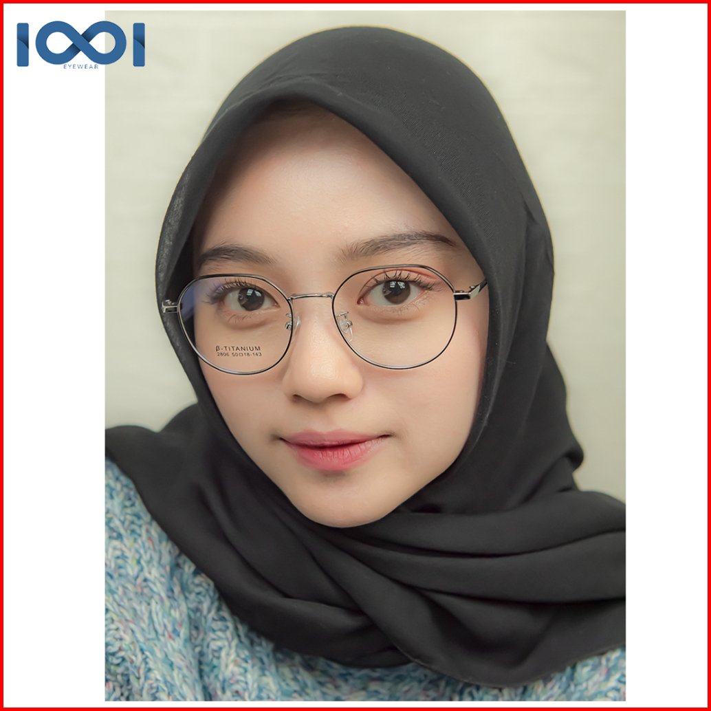 Iooi Kacamata Bulat Titanium Bisa Minus Photocromic Anti Blueray Frame Ringan Pria Wanita 2806