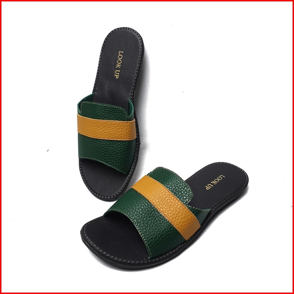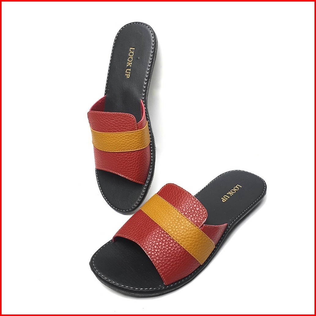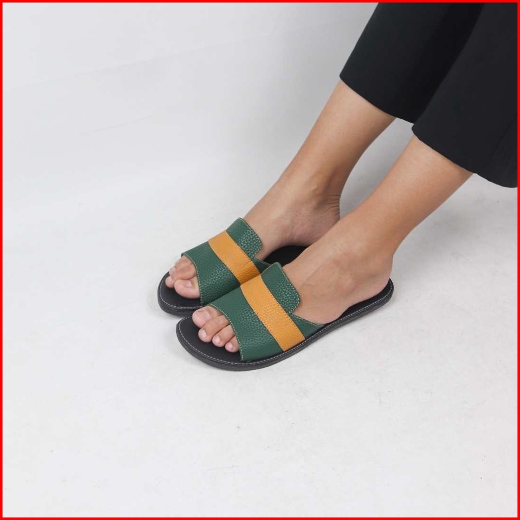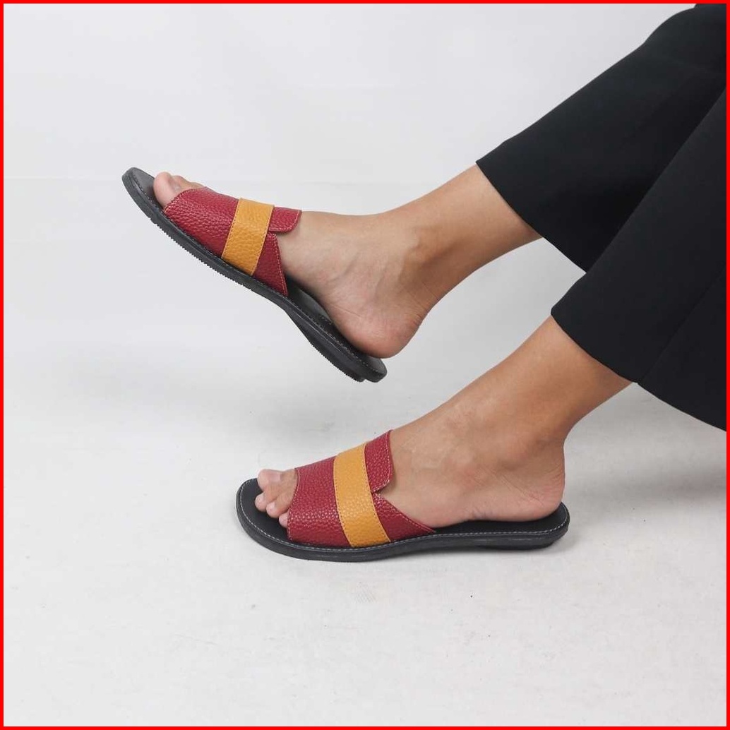 Julie Lookupshoes Sandal Kulit Wanita Sandal Kokop Kombinasi Papirut Series Flat Karet