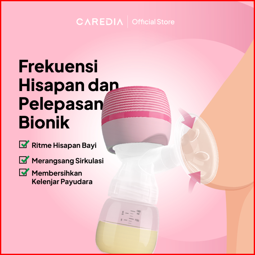 Caredia Pompa Asi Elektrik Tanpa Kabel Otomatis 1200mah Pompa Asi Tanpa Portabel Rasa Sakit Pumping Asi Efisien Fungsi L