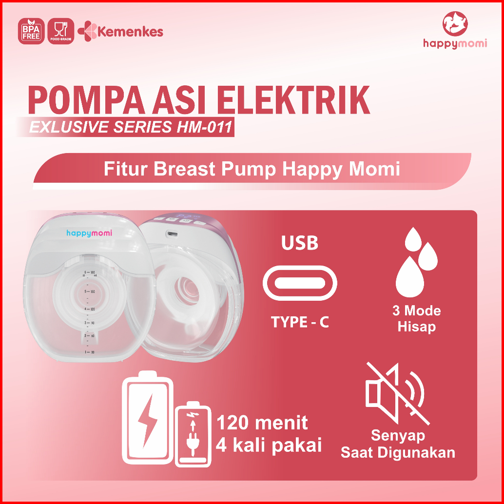 Garansi Resmi 1 Tahun - Happymomi Pompa Asi Elektrik Breast Pump New Generasi Paling Ringan 3 Mode