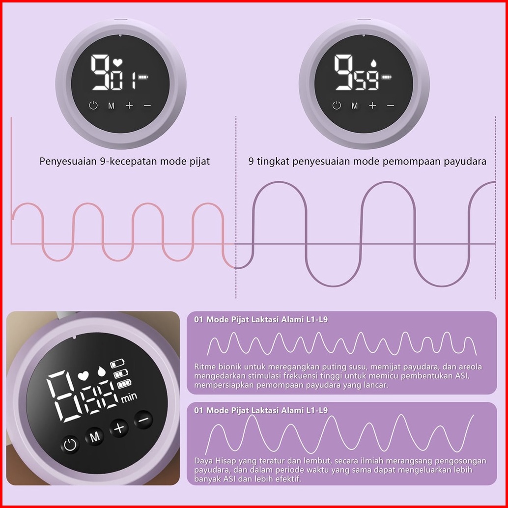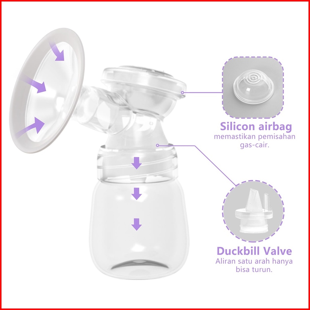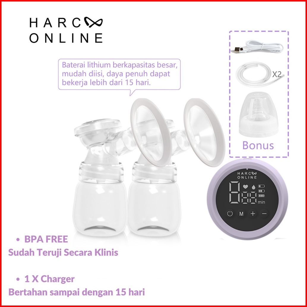 Harcoo Online - Pompa Asi Double Botol Double Breastpump Electric Portable Rechargerable Bpa Free Mz-608 Purple