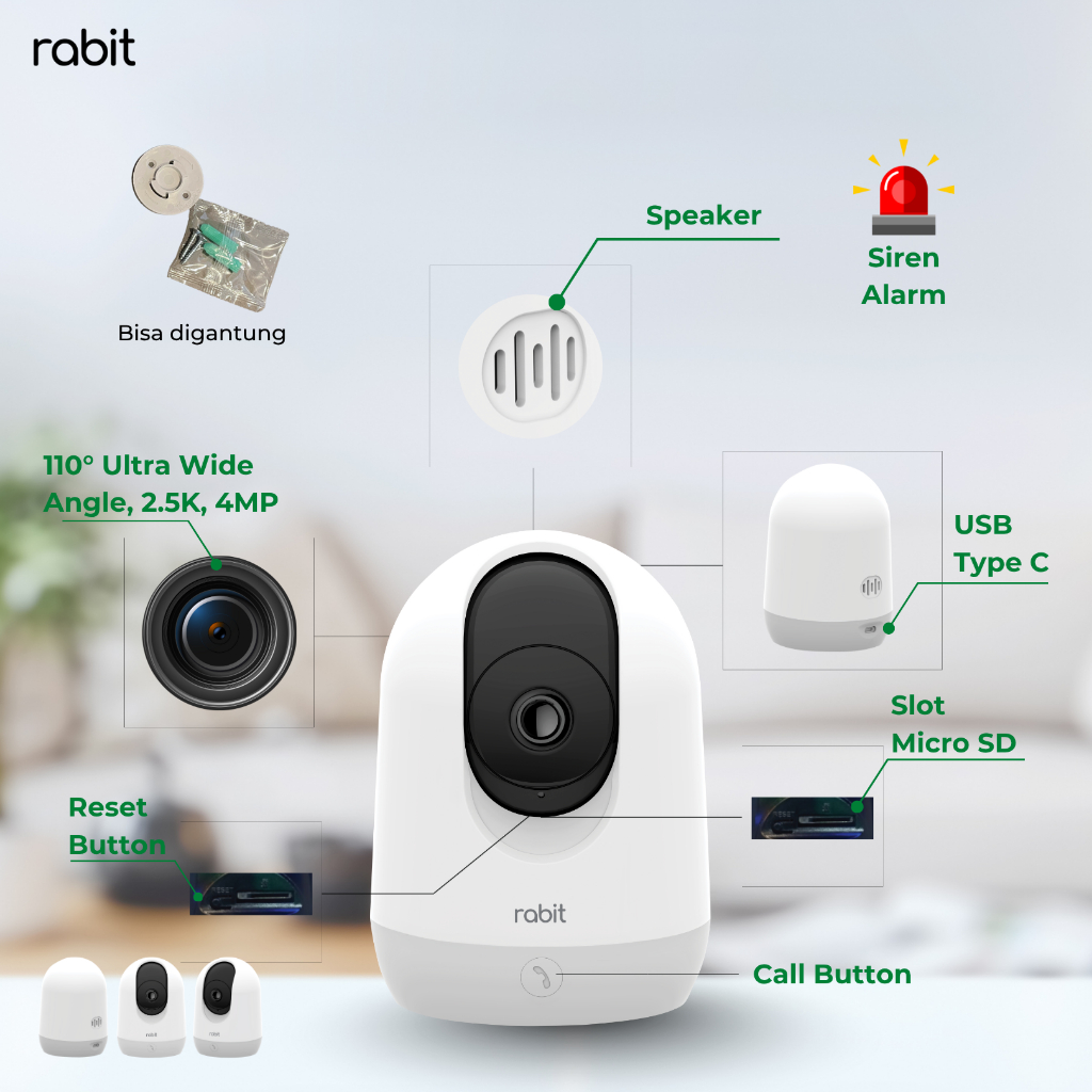 RABIT Smart IP CCTV Camera Indoor PTZ PRO+ 4 MP AI Auto Tracking Call Button