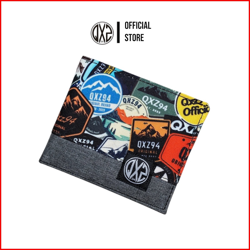 Qxz94 Dompet Pria Kulit Kanvas Full Print Motif Pendek Lipat Kartu Uang Tipis Polos Kombinasi Abu