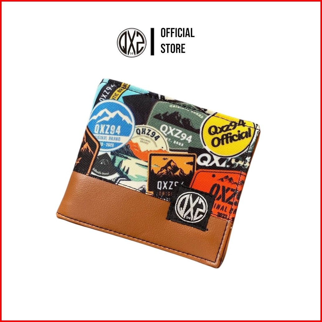 Qxz94 Dompet Pria Kulit Sintetis Kombinasi Kanvas Print Motif Pendek Lipat Kartu Tipis Polos Coklat