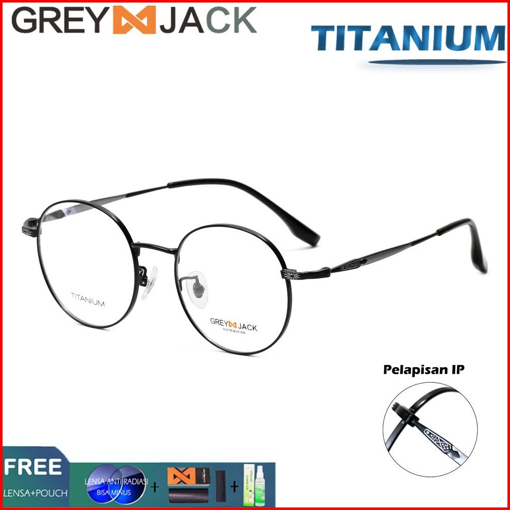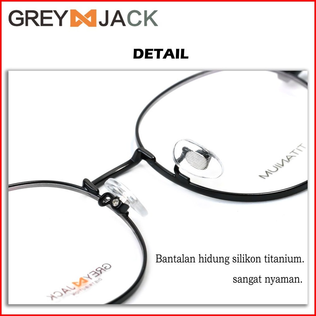 Grey Jack Frame Kacamata Titanium Bentuk Bulat Simple Bisa Minus Antiradiasi Blueray Photocromic Bluecromic 9085