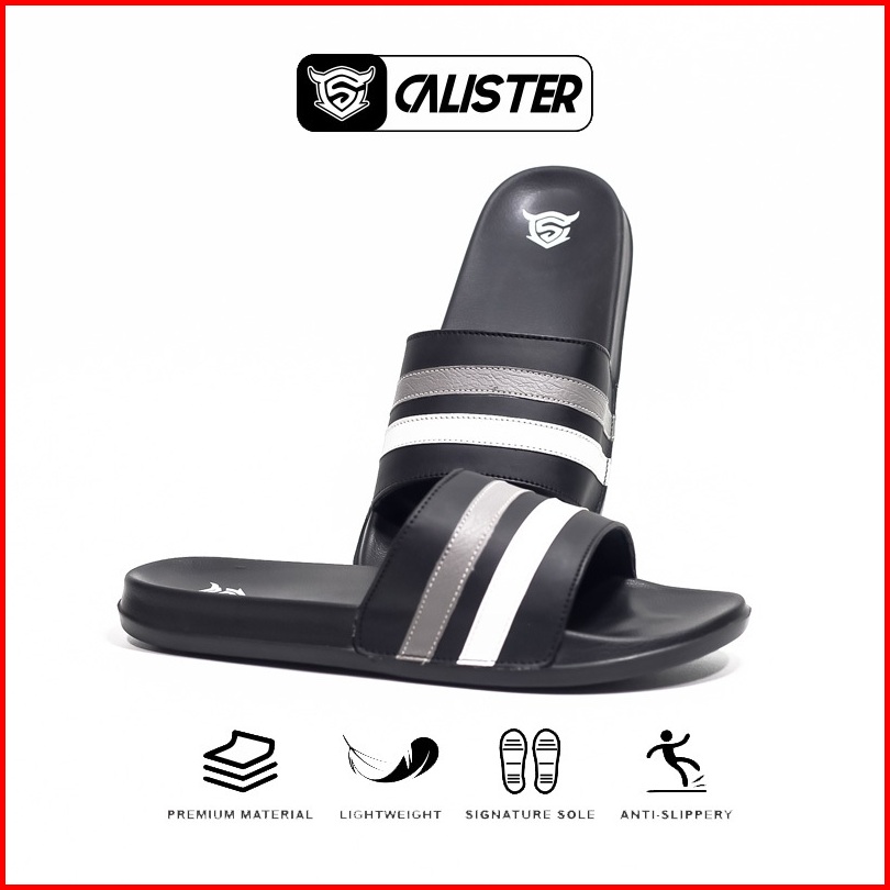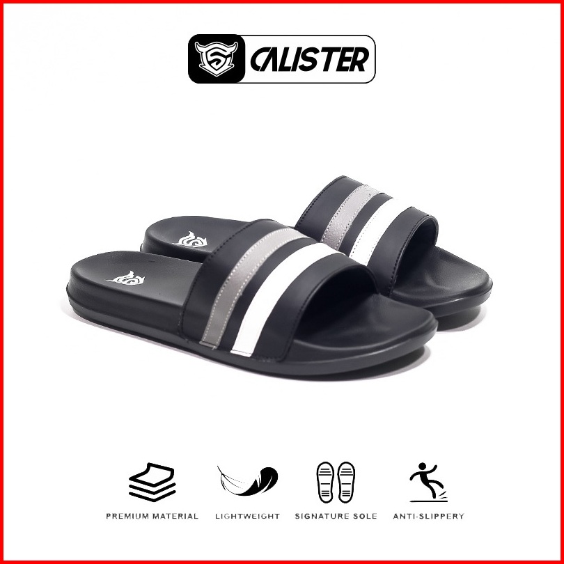 Calister - Sandal Selop Slip On Rapha Pria Dewasa - Black Abu Tua Abu Muda
