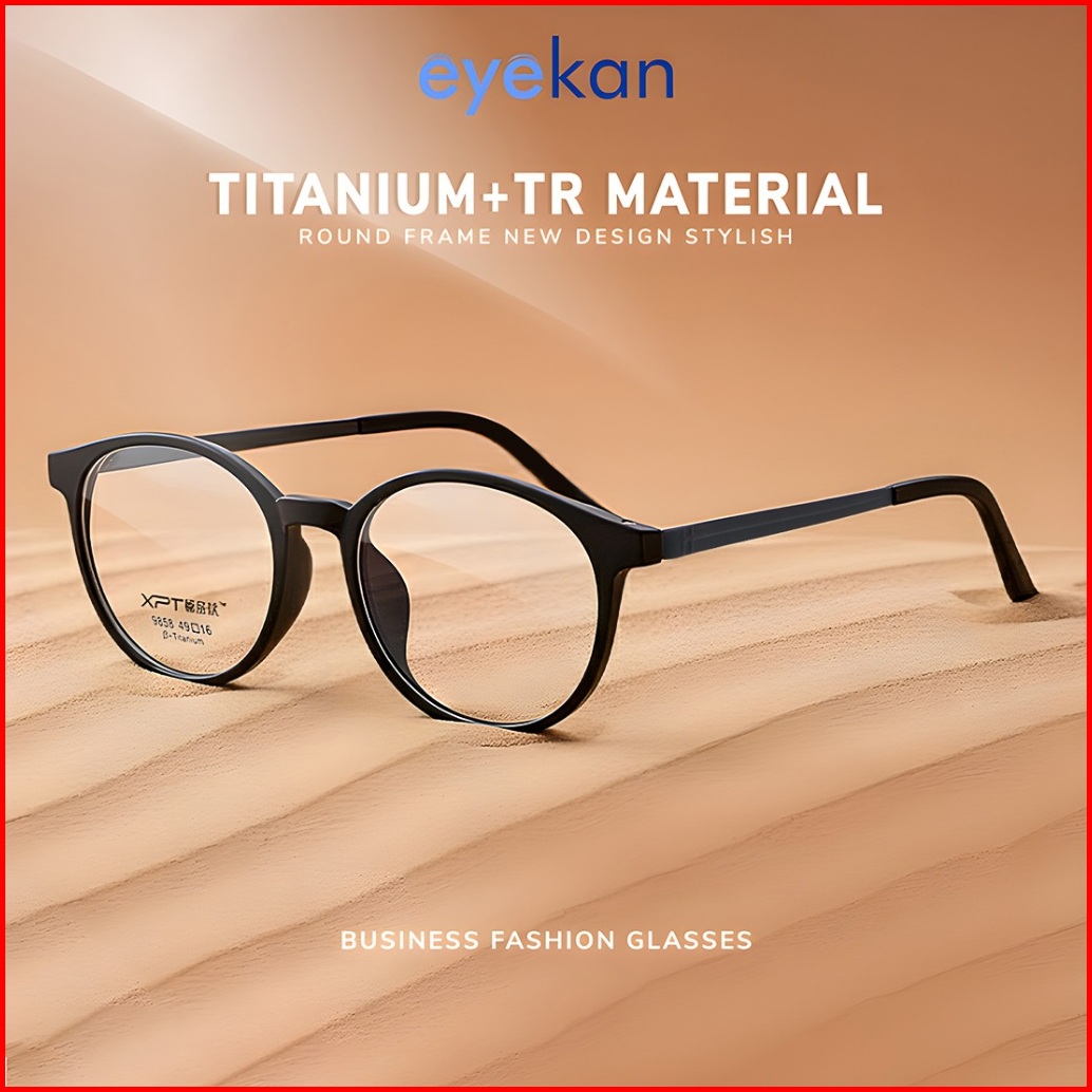 Eyekan Kacamata Titanium Tr Anti Radiasi Minus Anti Bluelight Photocromic Bluecromic Frame Bulat Terbaru Fashion Wanita