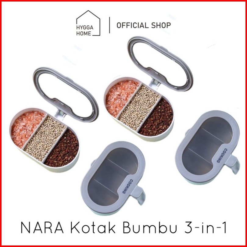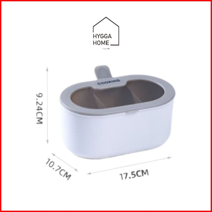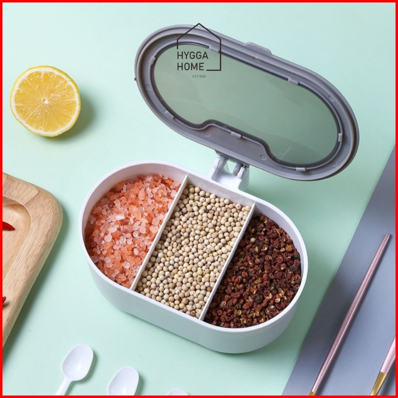 Hygga Home Nara Tempat Wadah Kotak Bumbu Dapur 3in1 3 Sekat Dengan Tutup Sendok Seasoning Pot