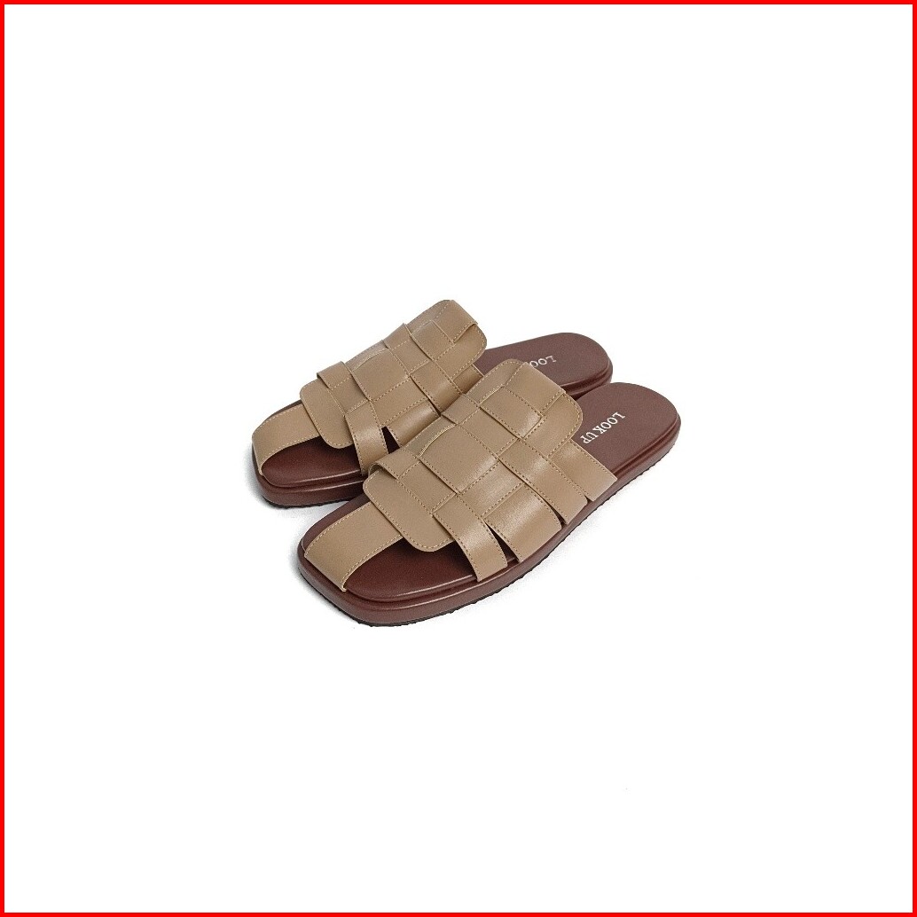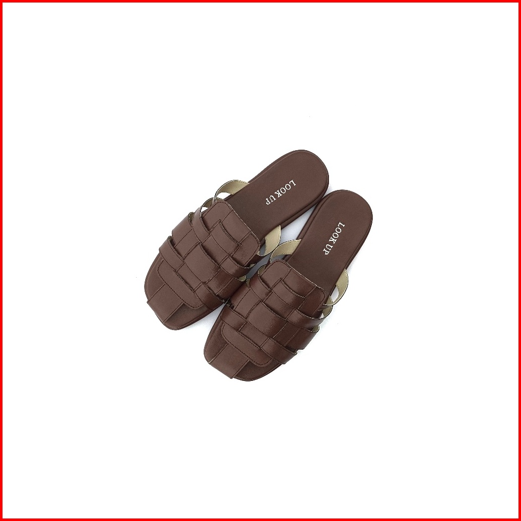 Biella Lookupshoes Sandal Wanita Slop Anyam Ketupat Empuk Sendal Flat Teplek Anti Slip Sol Karet