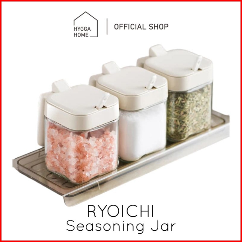 Hygga Home Ryoichi Kotak Tempat Bumbu Dapur Gelas Dgn Sendok Seasoning Spice Jar