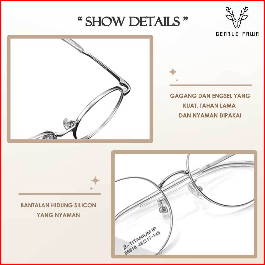 Gentle Fawn Kacamata Antiradiasi Blueray Sinar Biru Titanium Ringan Bisa Minus Photocromic Bluecromic Bulat 86618