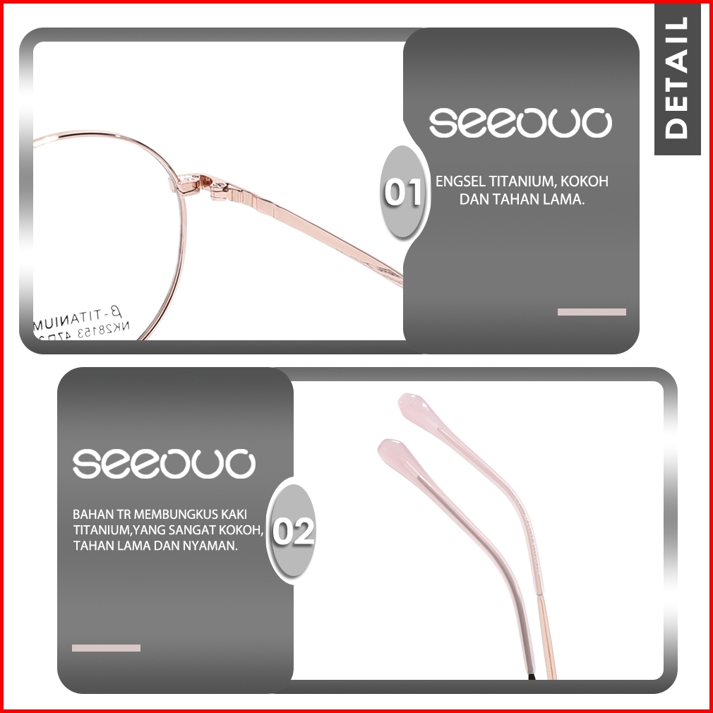 Seeouo Frame Kacamata Fashionable Bentuk Bulat Retro Stylish Titanium High Quality Bisa Minus Antiradiasi Blueray
