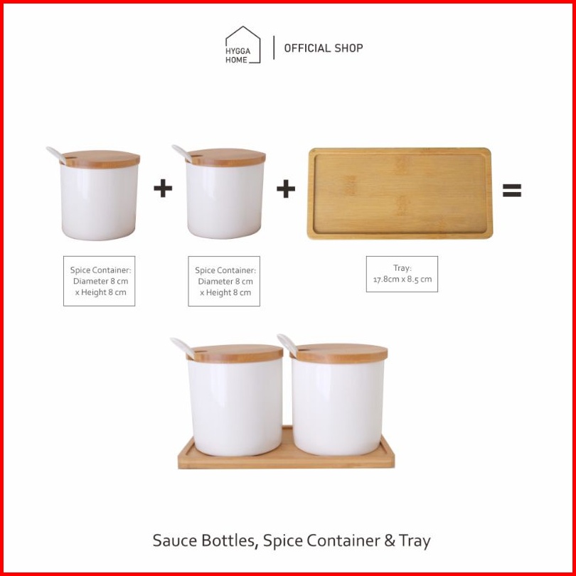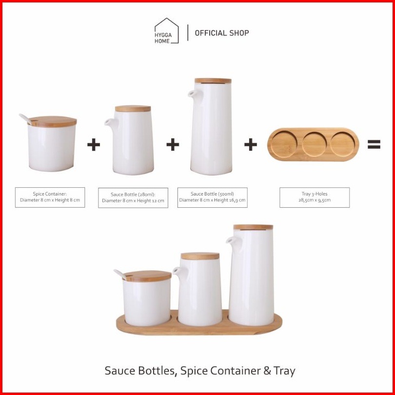 Hygga Home Ceramic Sauce Bottles Spices Cup And Tray With Bamboo Cover Botol Saos Dan Gelas Bumbu