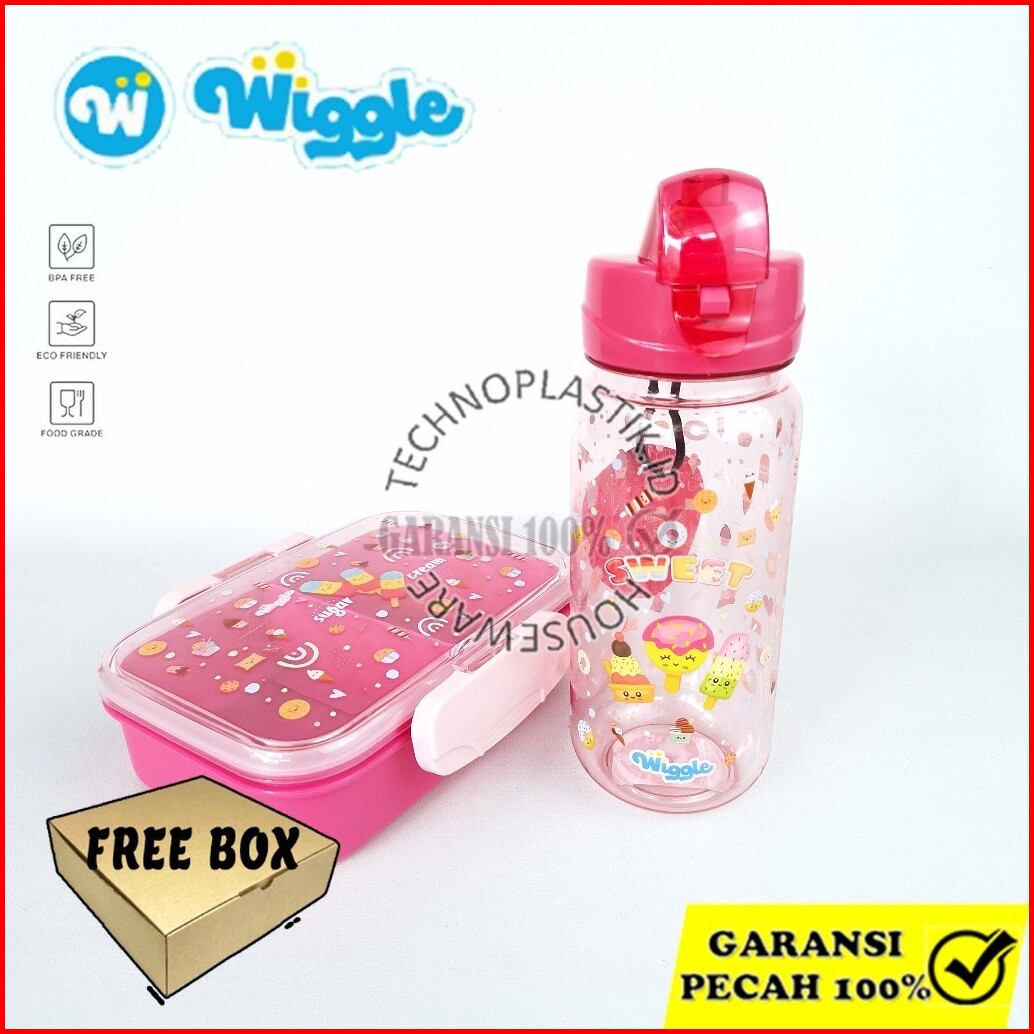 Wiggle Lunch Box Set New Pink Dessert Dino Dino 3in1 Tempat Bekal Botol Minum Celengan
