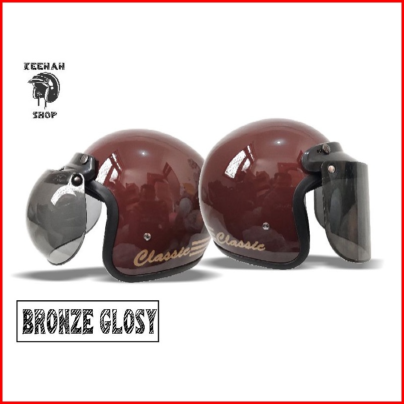 Helm Bogo Retro Dewasa Wanita Pria Sni Kaca Cembung Dan Kaca Datar