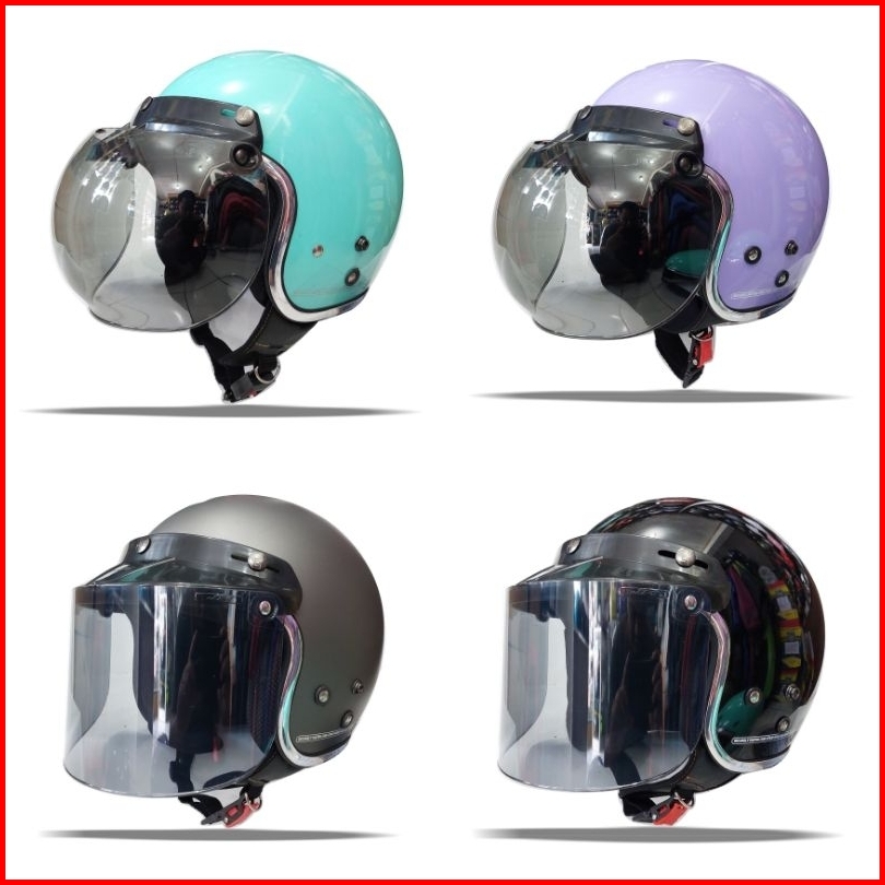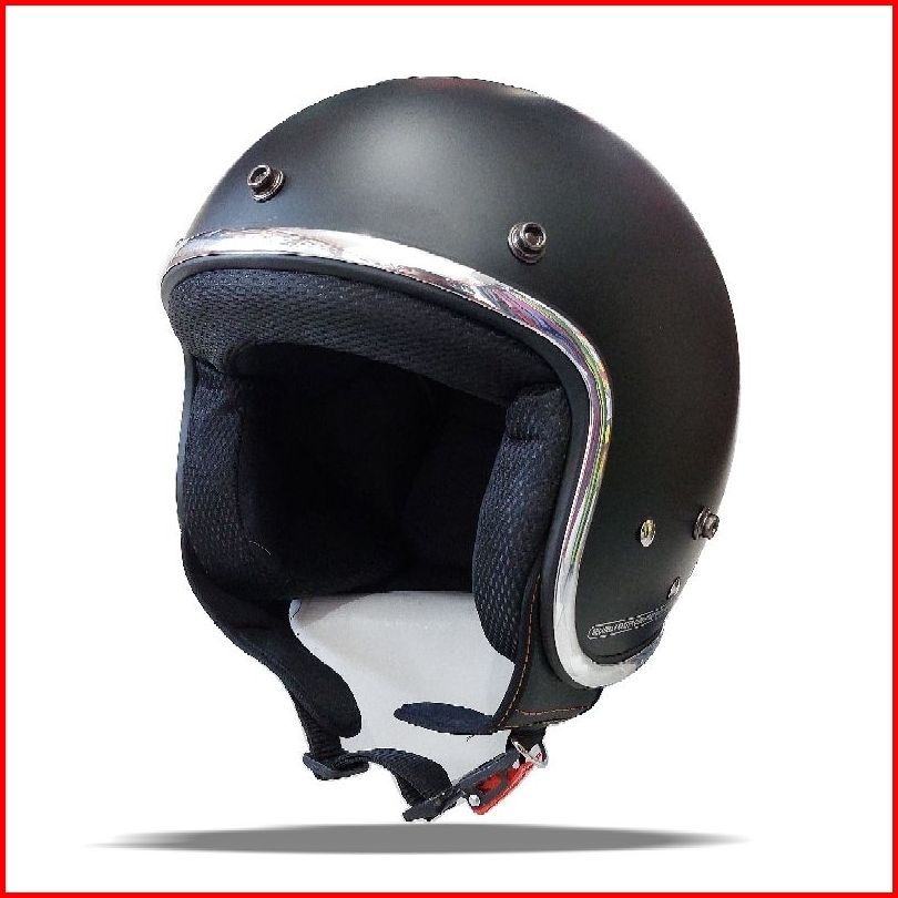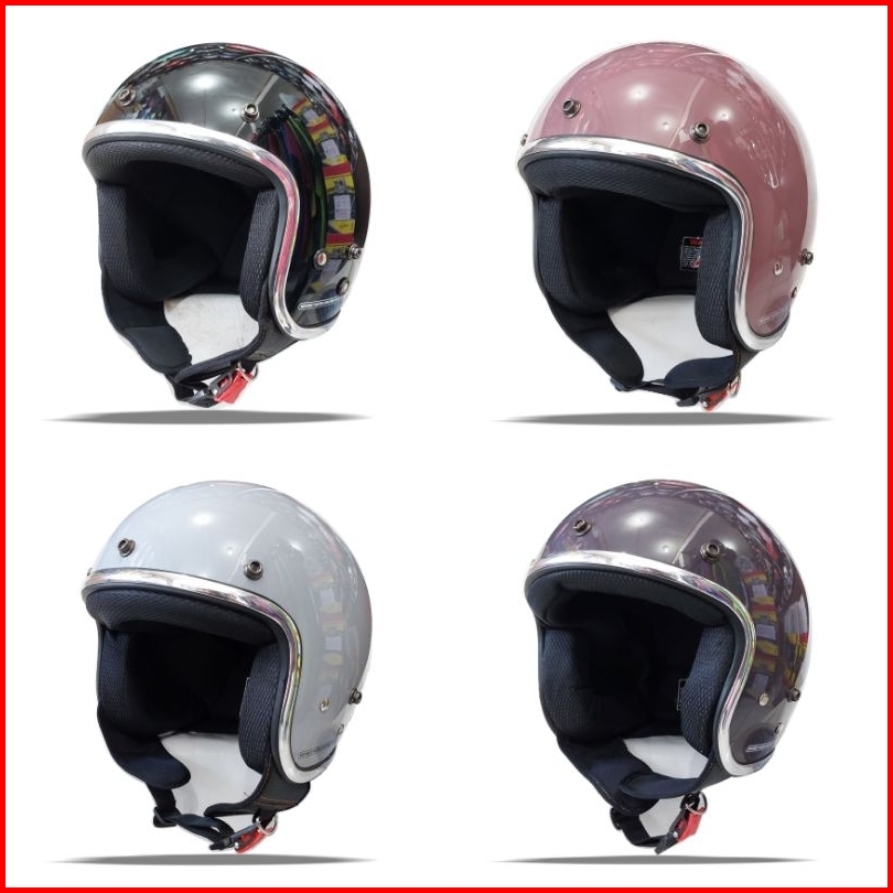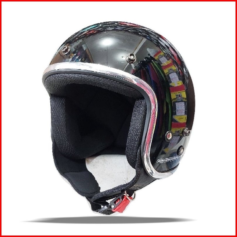 Helm Bogo Retro Dewasa Sni Full Leher List Chrome Kaca Cembung Dan Kaca Datar