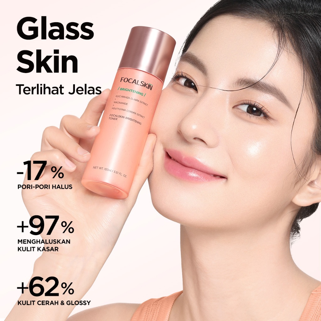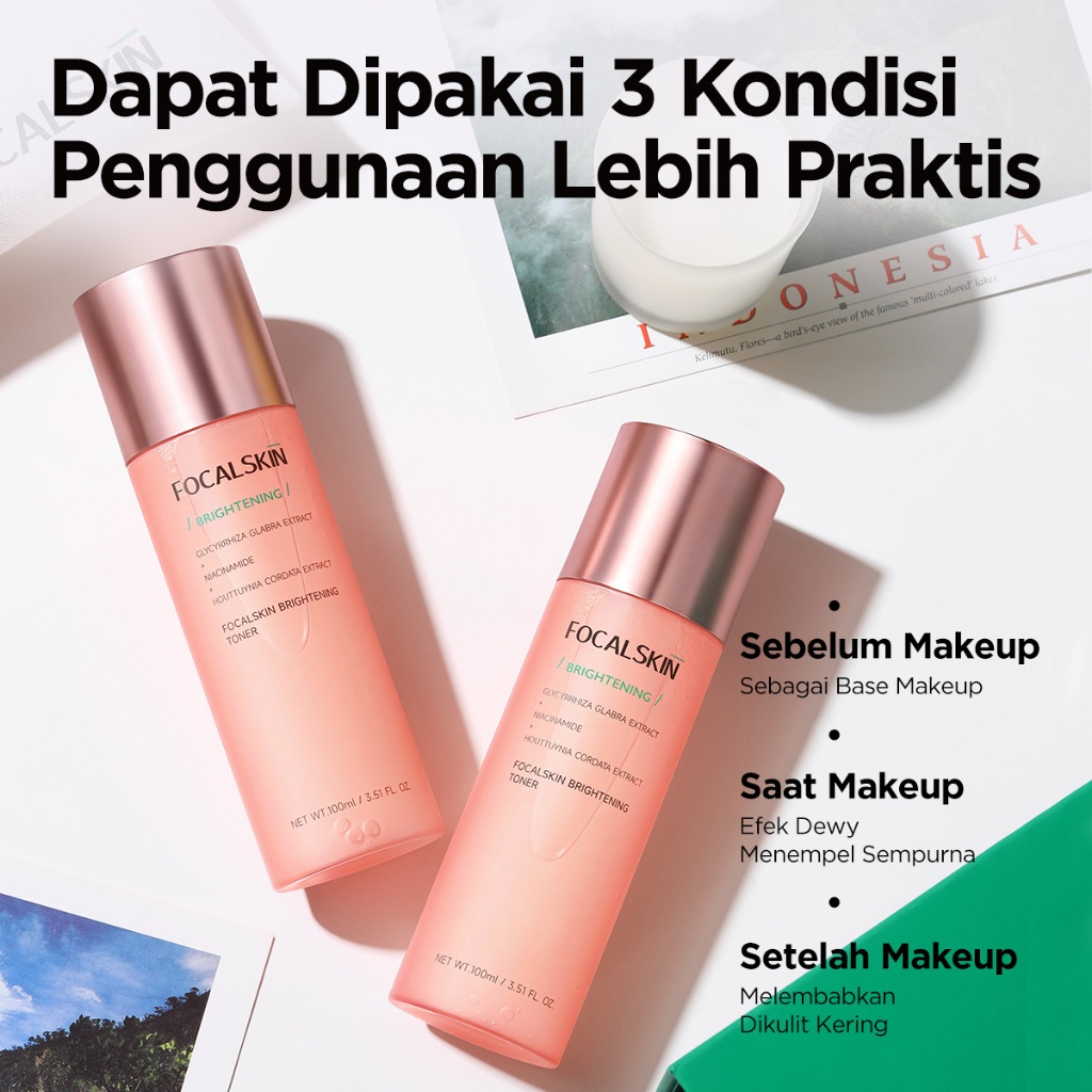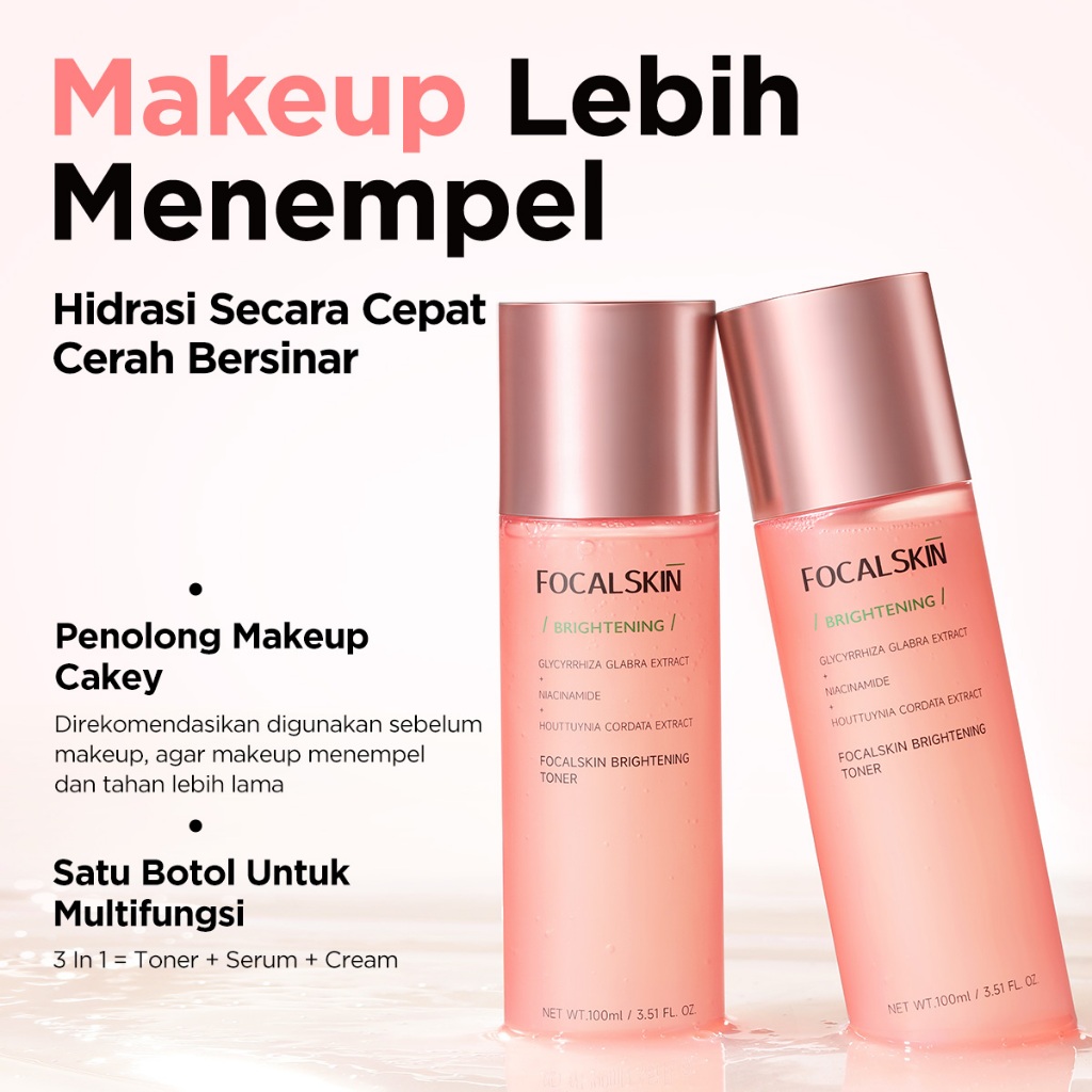 Focalskin 3 In 1 Brightening Serum Toner - Glycyrrhiza Glabra + Niacinamide Essence Toner Wajah Glowing Hydrating Eksfol