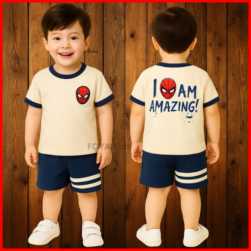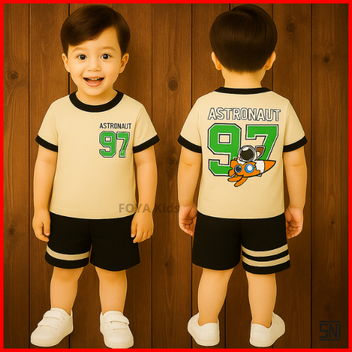 Foya Kids - Setelan Baju Anak Premium Anak Laki Laki Usia 0-6 Tahun Setelan Celana Pendek Motif Spiderman Astronot Pesaw
