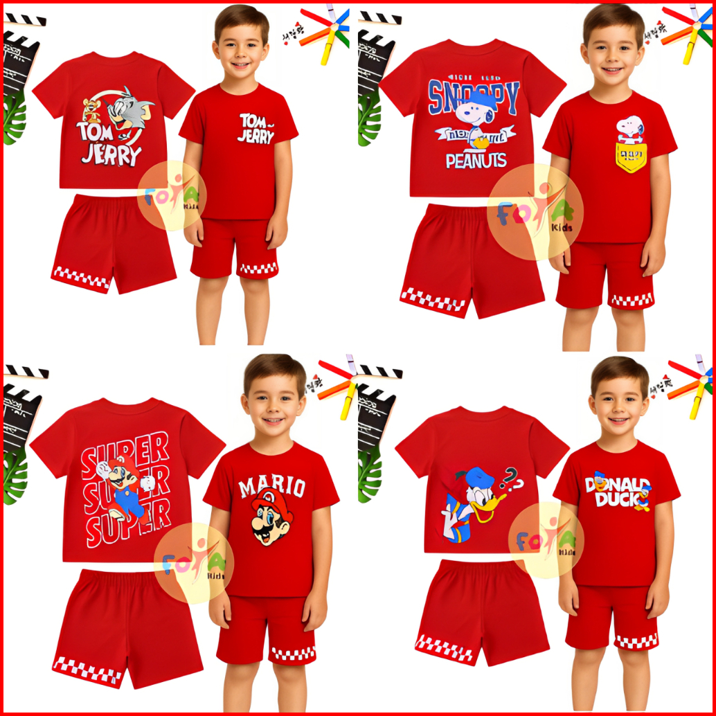Foya Kids - Setelan Premium Anak Laki - Laki Perempuan Usia 0-6 Tahun Setelan Murah Motif Tom Duck Mario Karakter Setela