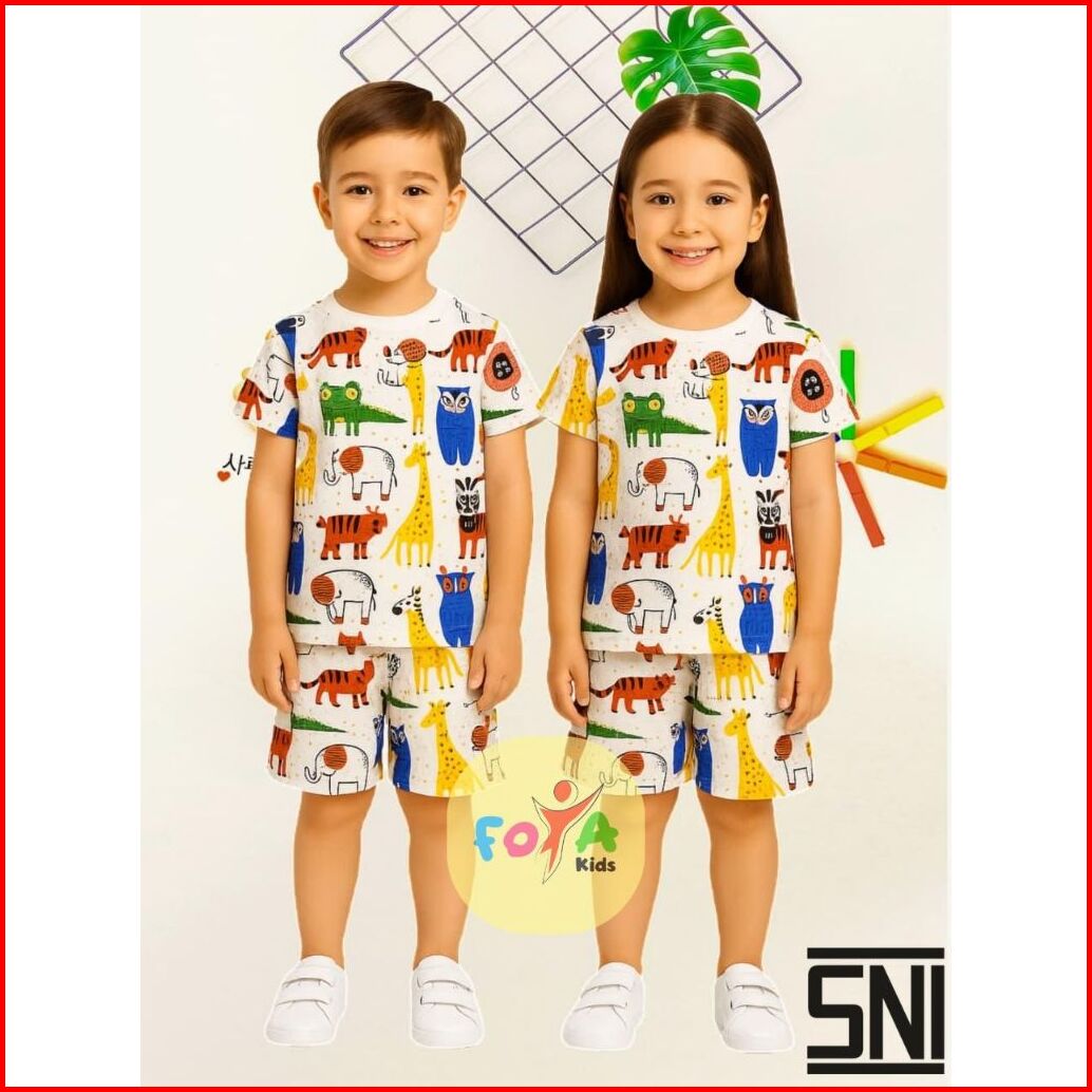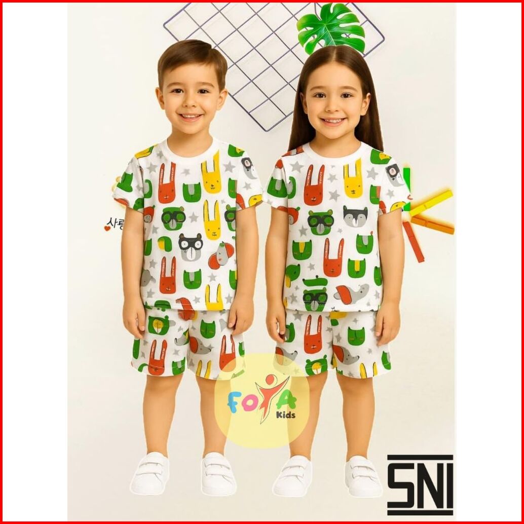 Foya Kids - Setelan Premium Usia 0-6 Tahun Setelan Murah Anak Motif Sablon Setelan Celana Pendek Motif Rabbit Tiger Cat