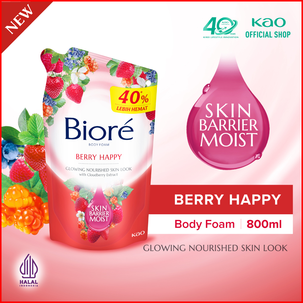Biore Body Foam Sabun Mandi Cair Berry Happy 800ml Pouch