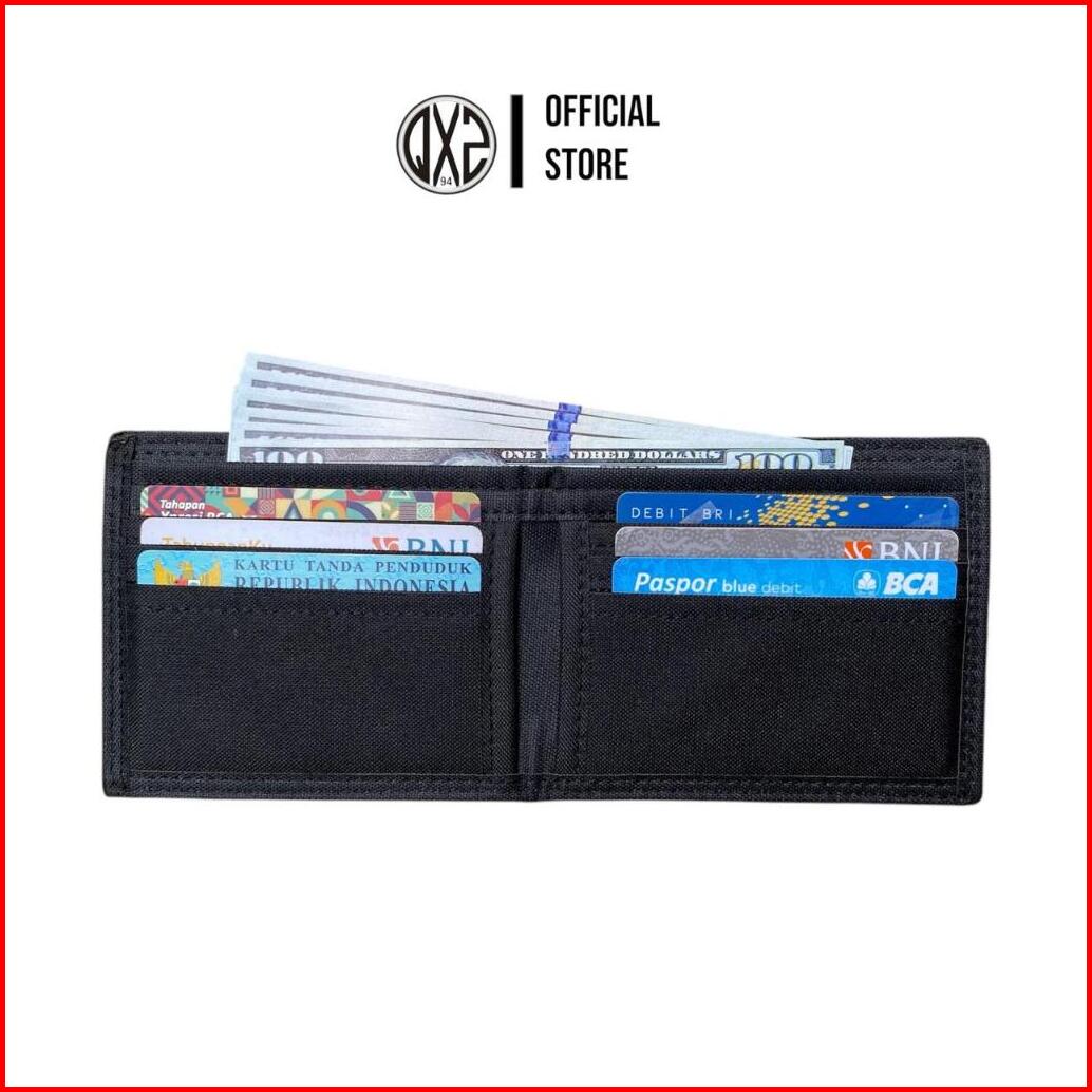 Qxz94 Dompet Pria Kulit Kanvas Pendek Lipat Kartu Polos Hitam Dptl-kv02
