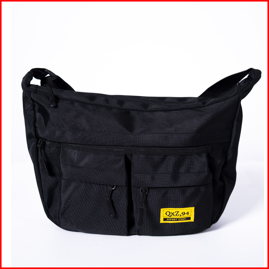 Qxz94 Tas Selempang Pria Wanita Sekolah Besar Hitam Cordura Qprh02